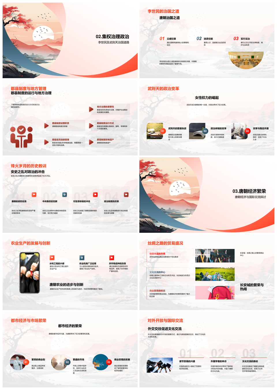 风云办公提供的唐诗丝路科举兴衰李世民武则天卷轴PPT模板,下载格式为pptx,一共28页,作品中文字及图均可以修改和编辑,图片更改请在作品中右键图片并更换,文字修改请直接点击文字进行修改。