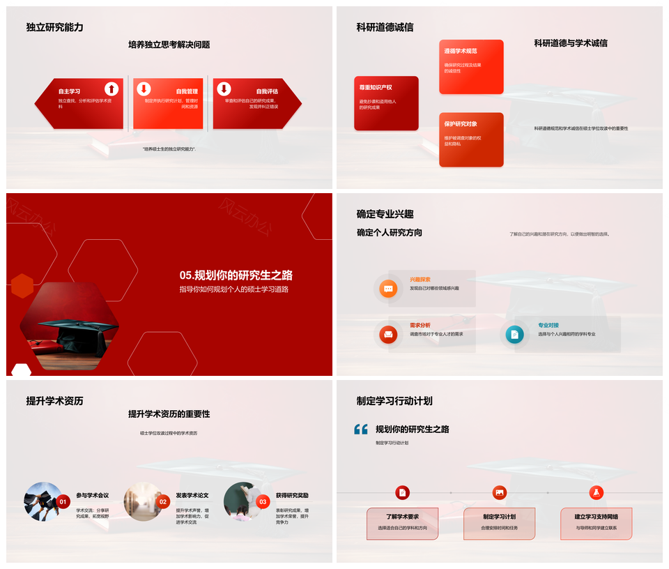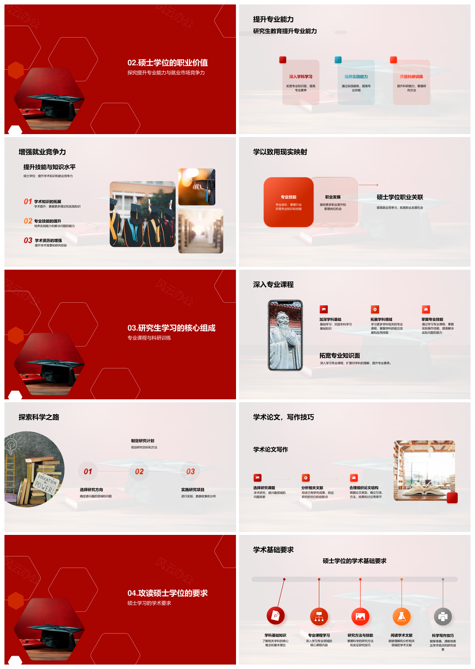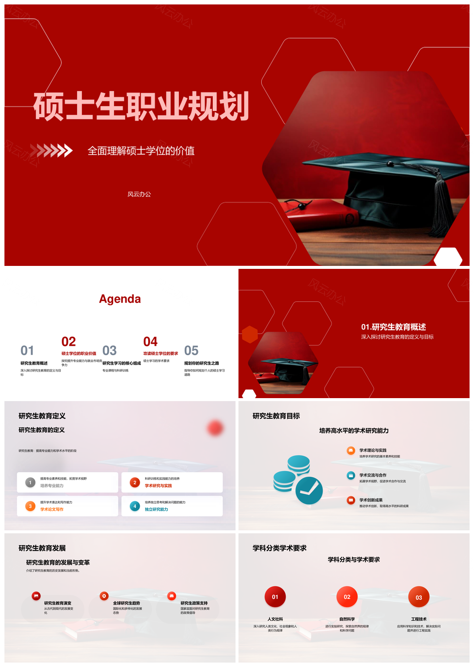 风云办公提供的硕士生职业规划学术能力与就业竞争力PPT模板,下载格式为pptx,一共24页,作品中文字及图均可以修改和编辑,图片更改请在作品中右键图片并更换,文字修改请直接点击文字进行修改。