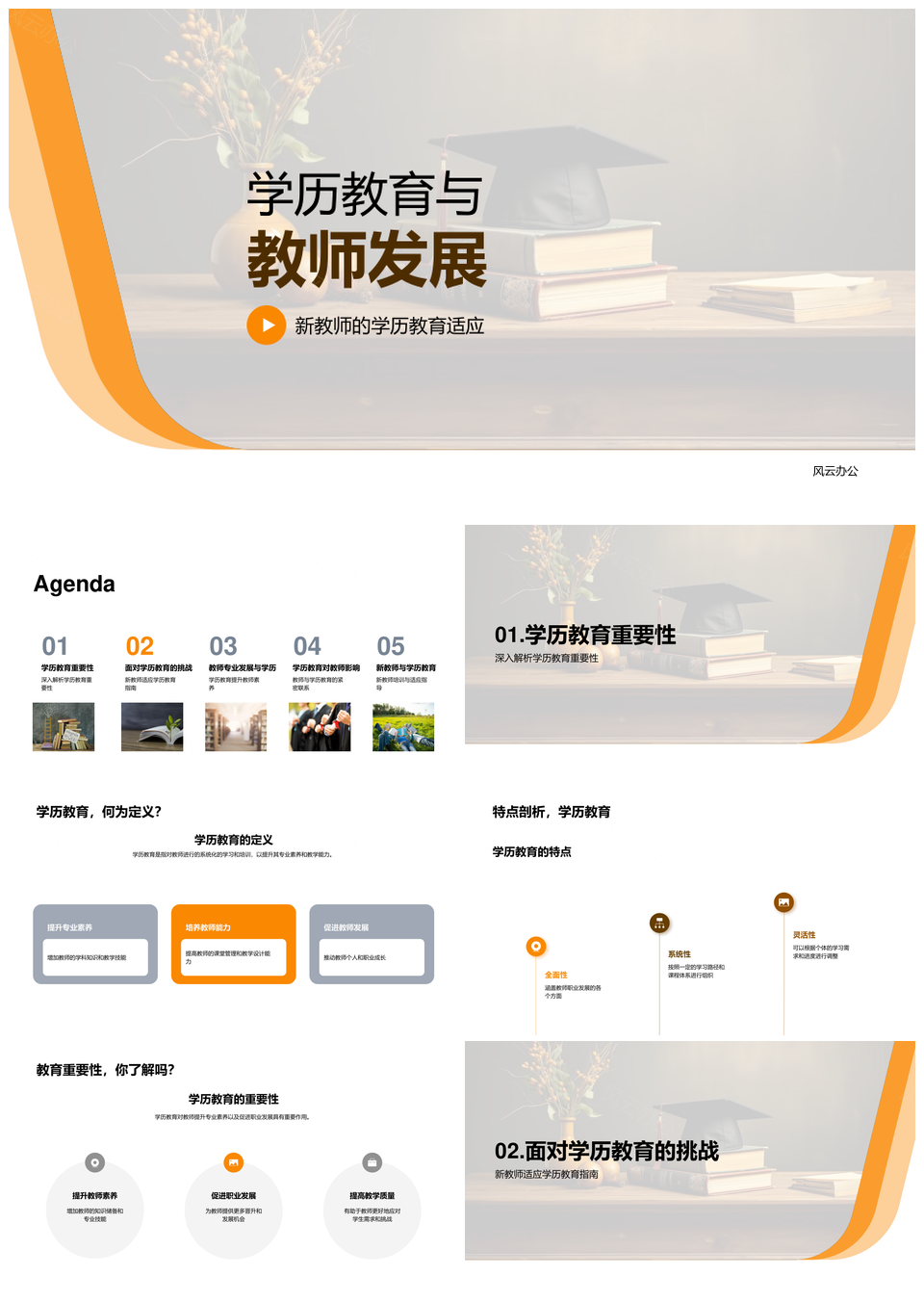 风云办公提供的学历教育助力新教师职业发展PPT模板,下载格式为pptx,一共23页,作品中文字及图均可以修改和编辑,图片更改请在作品中右键图片并更换,文字修改请直接点击文字进行修改。