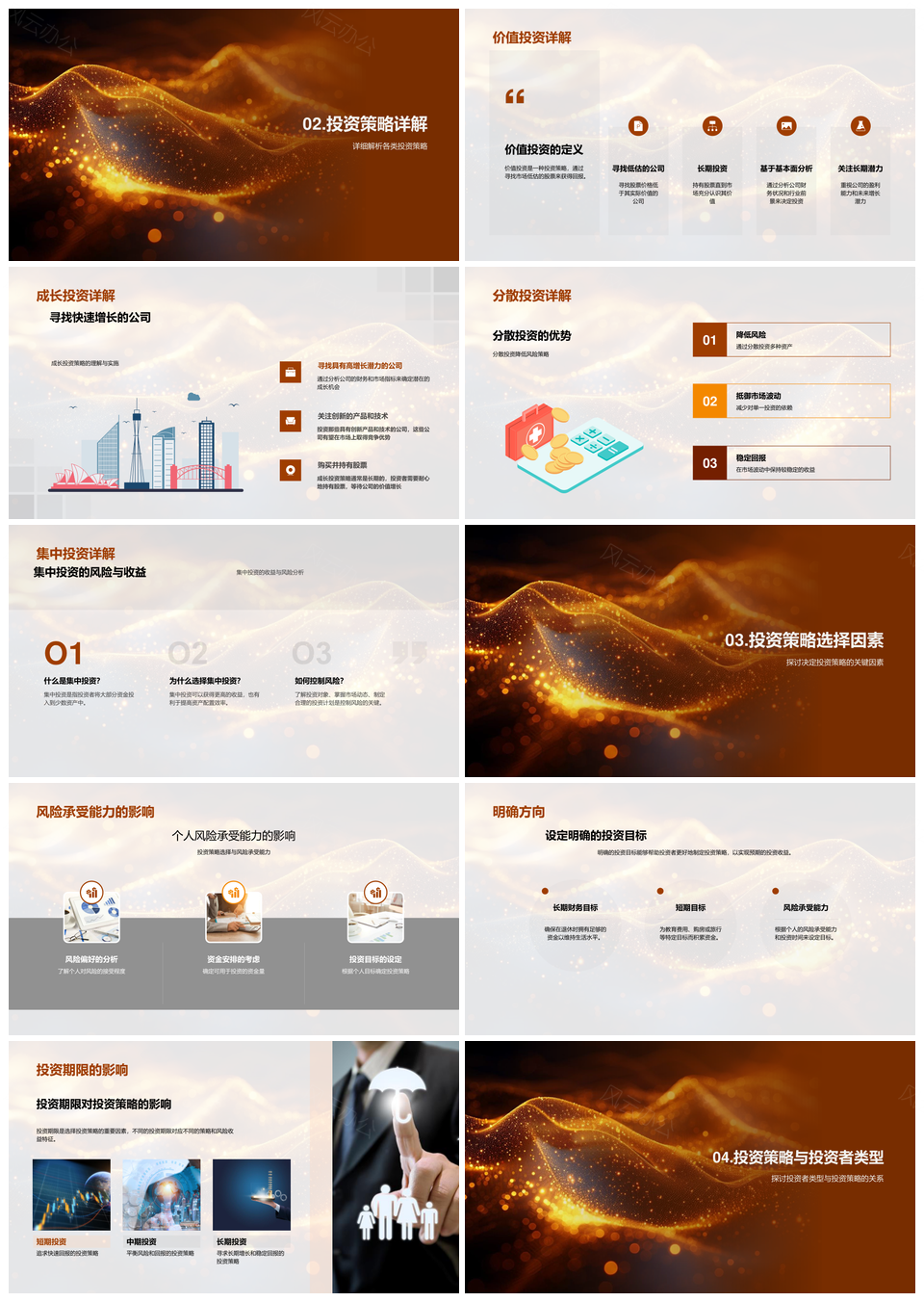 投资顾问投资者财务金融价值成长分散策略培训PPT模板推荐