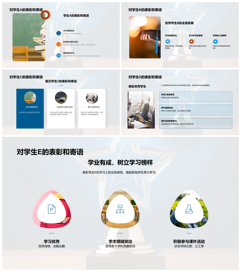 这是一张光芒学子勤学笃行学术课外双优荣膺奖杯PPT模板,包含光芒学子、勤学笃行、学术、课外、双优、荣膺、奖杯等主题内容,也可用作光芒学子勤学笃行、光芒学子勤学、学子勤学笃行、勤学笃行学术、学术课外双优、课外双优荣膺奖杯、光芒学子、学子勤学、勤学笃行、笃行学术、学术课外、课外双优、双优荣膺、荣膺奖杯、双优荣膺奖杯等PPT场景使用。 风云办公提供的光芒学子勤学笃行学术课外双优荣膺奖杯PPT模板,下载格式为pptx,一共33页,作品中文字及图均可以修改和编辑,图片更改请在作品中右键图片并更换,文字修改请直接点击文字进行修改。