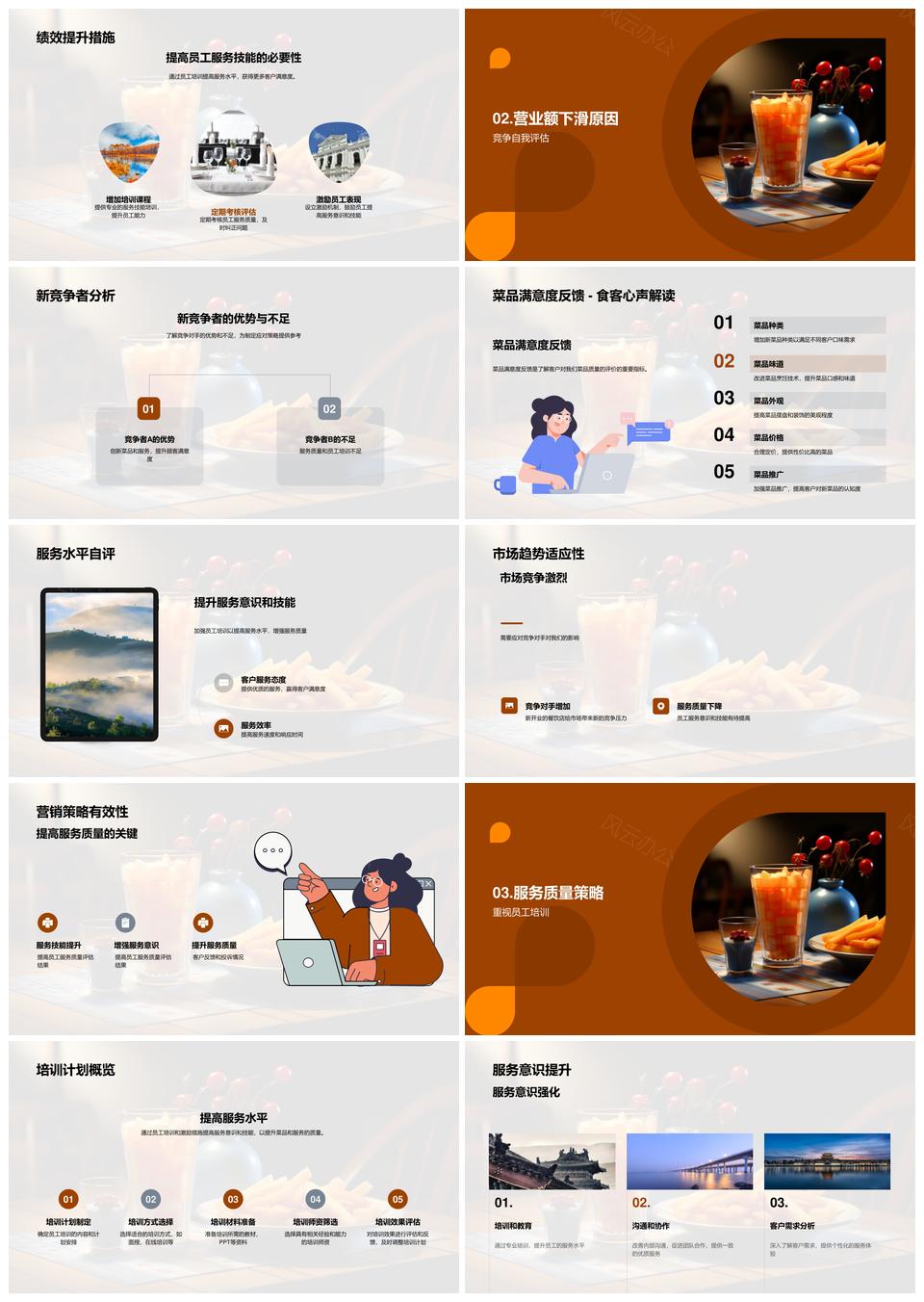 风云办公提供的餐饮绩效策略优化服务培训客户反馈PPT模板,下载格式为pptx,一共33页,作品中文字及图均可以修改和编辑,图片更改请在作品中右键图片并更换,文字修改请直接点击文字进行修改。