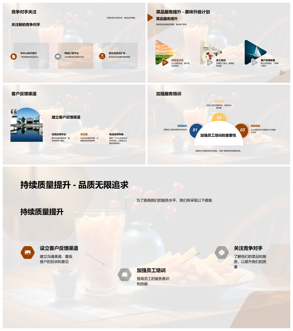 这是一张餐饮绩效策略优化服务培训客户反馈PPT模板,包含餐饮、绩效、策略、优化、服务、培训、客户、反馈等主题内容,也可用作餐饮绩效策略优化服务培训、绩效策略优化服务培训客户、策略优化服务培训客户反馈、餐饮绩效策略优化服务、餐饮绩效策略优化培训、餐饮绩效优化服务培训、绩效策略优化服务培训、策略优化服务培训客户、优化服务培训客户反馈、餐饮绩效策略优化、绩效策略优化服务、策略优化服务培训、优化服务培训客户、服务培训客户反馈、餐饮绩效优化等PPT场景使用。