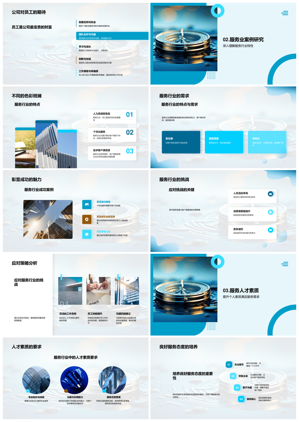 服务行业新员工企业文化服务深度解析指南针PPT模板推荐