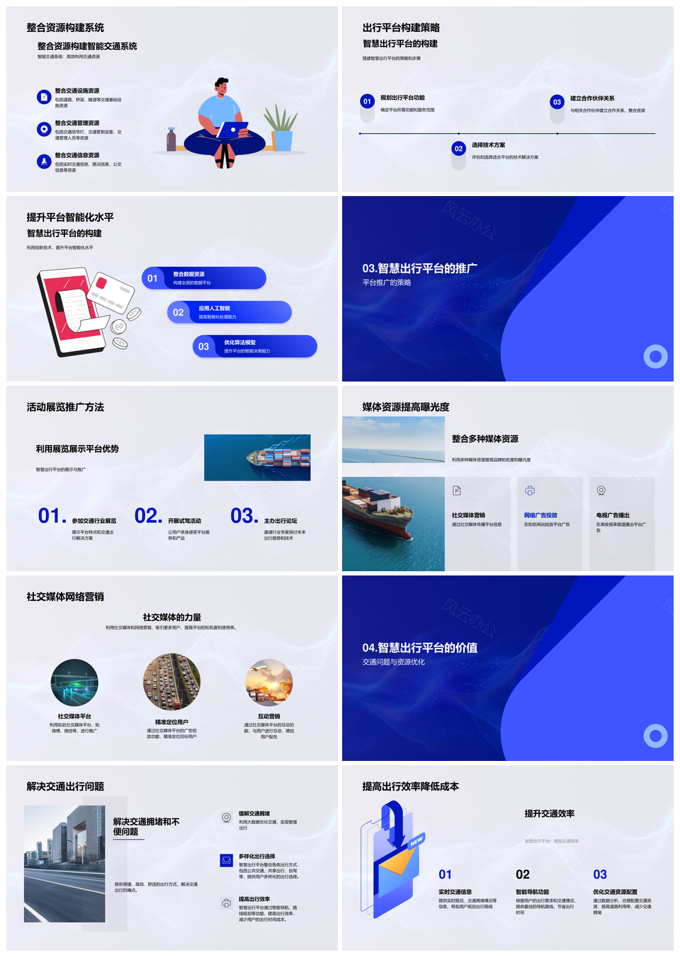这是一张智慧出行平台构建运营推广智能交通创新技术大型活动PPT模板,包含智慧出行、平台、构建、运营、推广、智能、交通、创新技术、大型活动等主题内容,也可用作智慧出行平台构建运营、平台构建运营推广、构建运营推广智能交通、运营推广智能交通创新技术、推广智能交通创新技术大型活动、智慧出行平台构建、平台构建运营、构建运营推广、运营推广智能交通、推广智能交通创新技术、智能交通创新技术大型活动、智慧出行平台、平台构建、构建运营、运营推广等PPT场景使用。 风云办公提供的智慧出行平台构建运营推广智能交通创新技术大型活动PPT模板,下载格式为pptx,一共23页,作品中文字及图均可以修改和编辑,图片更改请在作品中右键图片并更换,文字修改请直接点击文字进行修改。