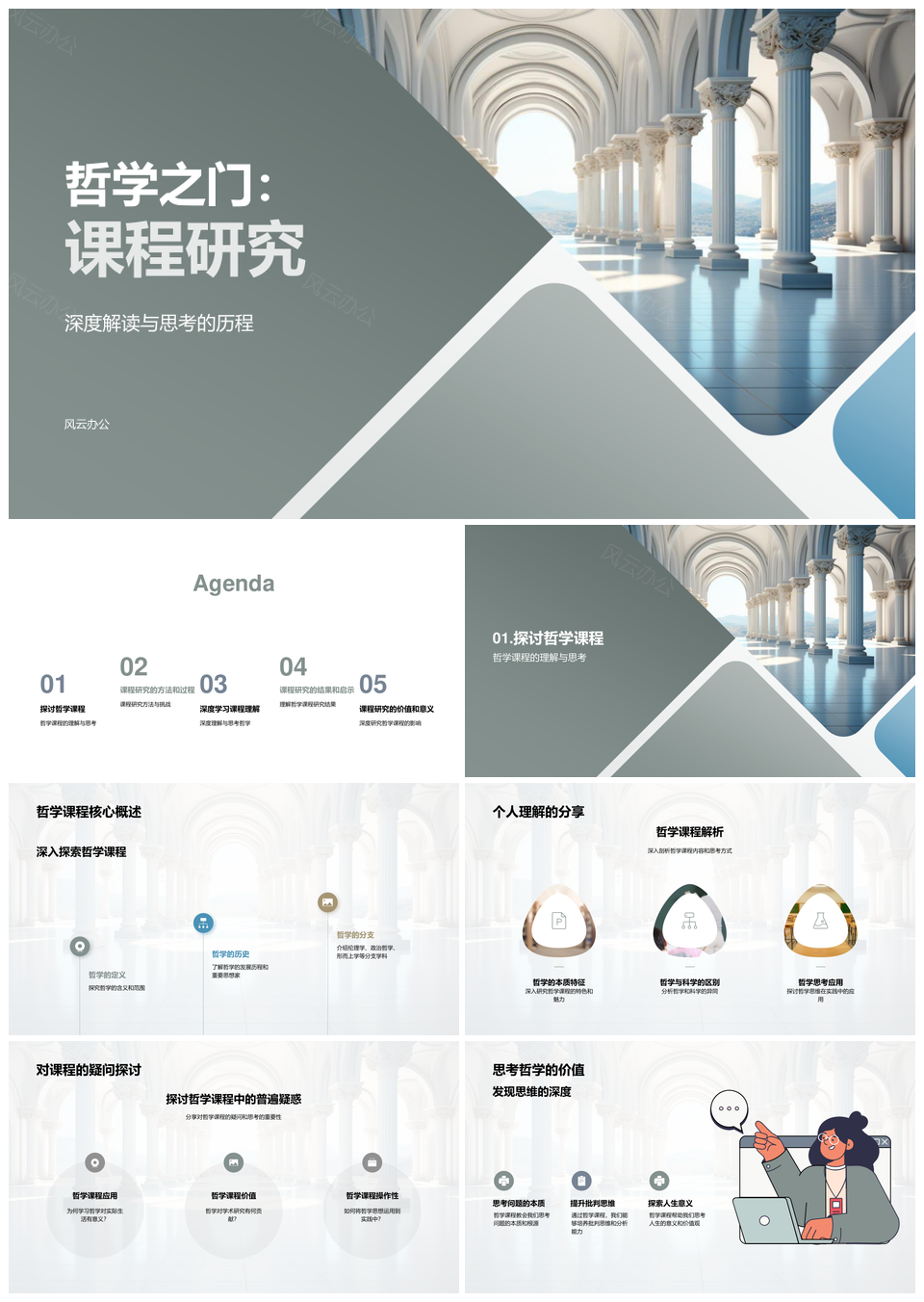 风云办公提供的哲学课程深度思考与批判研究PPT模板,下载格式为pptx,一共33页,作品中文字及图均可以修改和编辑,图片更改请在作品中右键图片并更换,文字修改请直接点击文字进行修改。