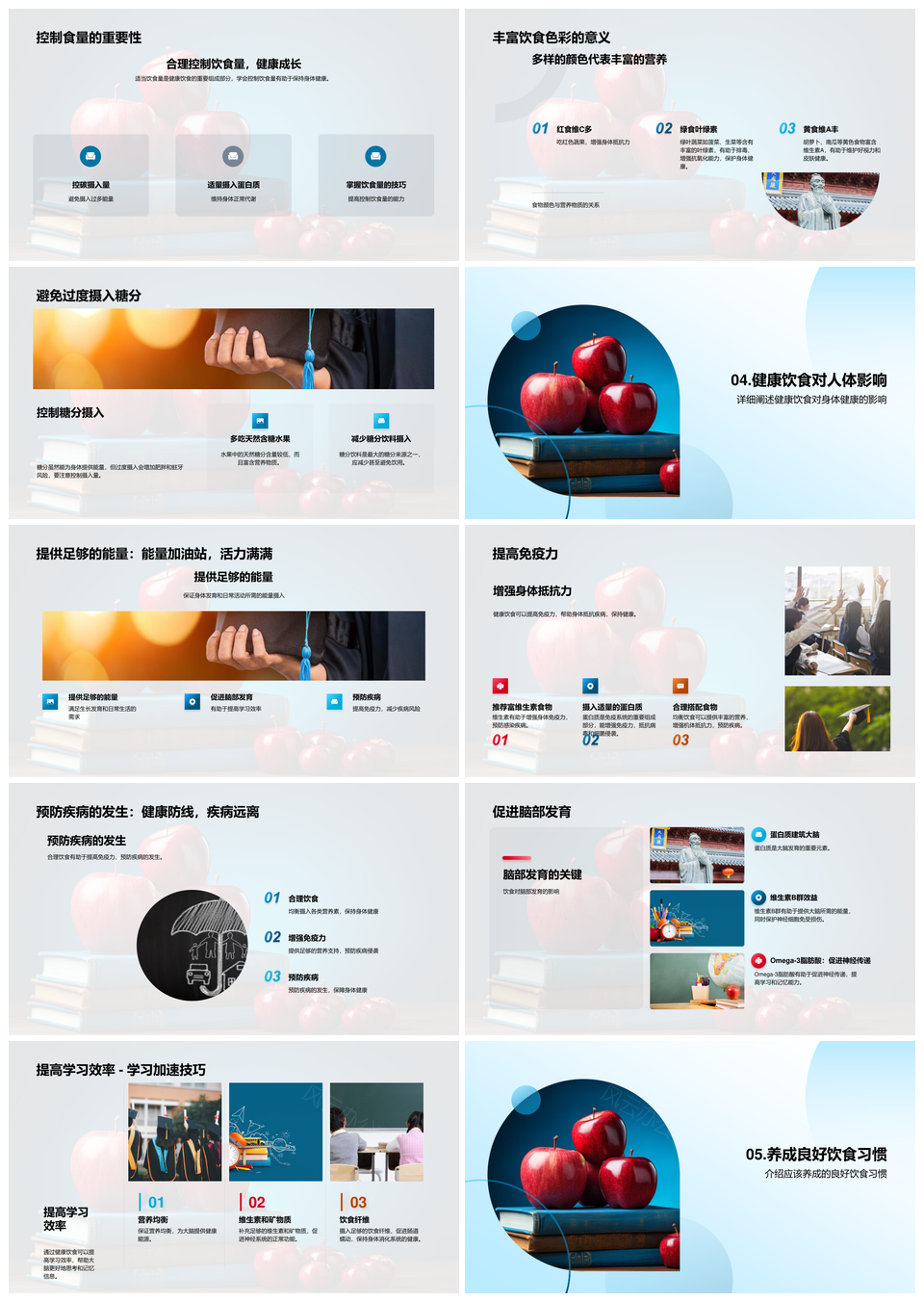 营养均衡搭配健康饮食助学习成长PPT模板