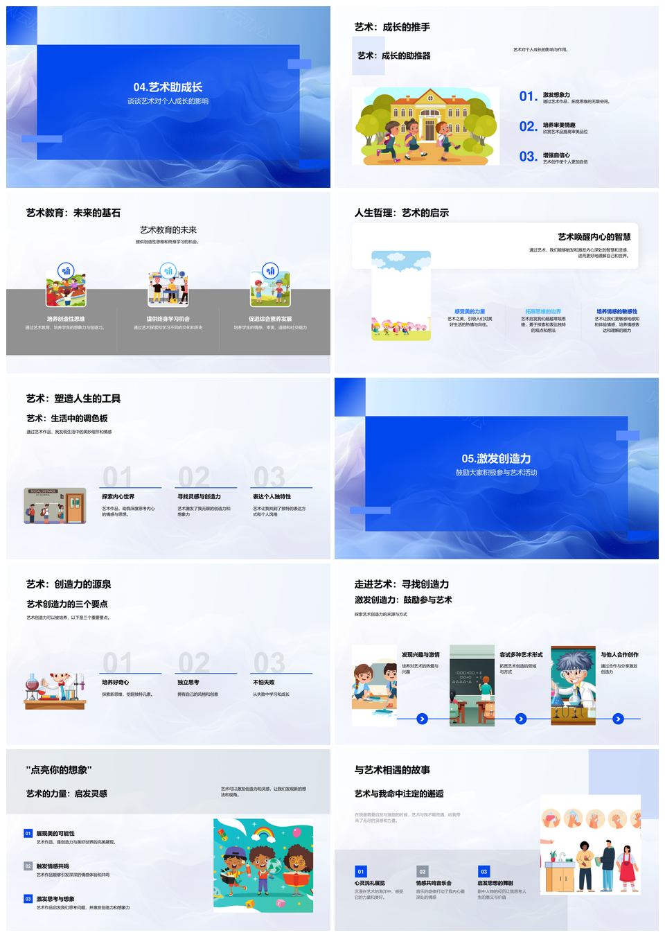这是一张艺术教育创作历程色彩情感价值分享PPT模板,包含艺术教育、创作历程、色彩、情感、价值、分享等主题内容,也可用作艺术教育创作历程、教育创作历程色彩、创作历程色彩情感、历程色彩情感价值、色彩情感价值分享、艺术教育创作、教育创作历程、创作历程色彩、历程色彩情感、色彩情感价值、情感价值分享、艺术教育、教育创作、创作历程、色彩情感等PPT场景使用。