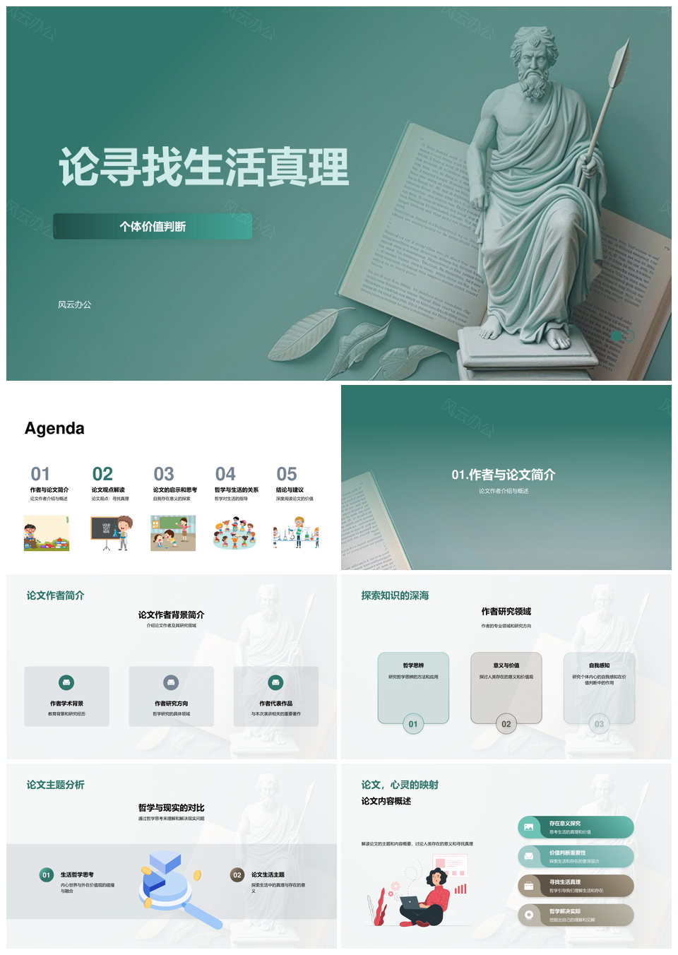 哲学探求生活真理中的个体价值与自我存在PPT模板