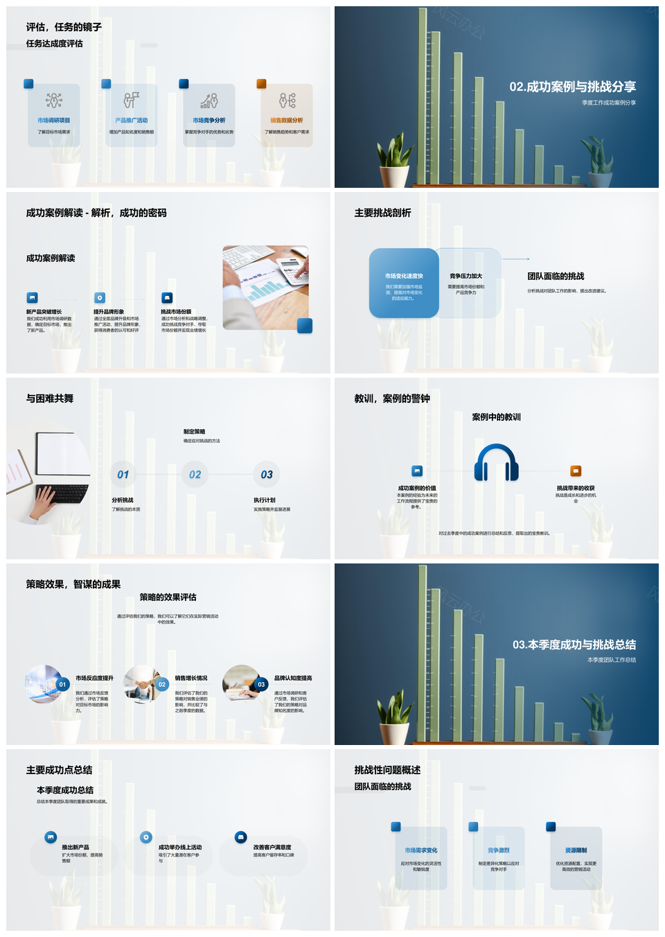 风云办公提供的营销团队成长策略季度总结案例PPT模板,下载格式为pptx,一共33页,作品中文字及图均可以修改和编辑,图片更改请在作品中右键图片并更换,文字修改请直接点击文字进行修改。