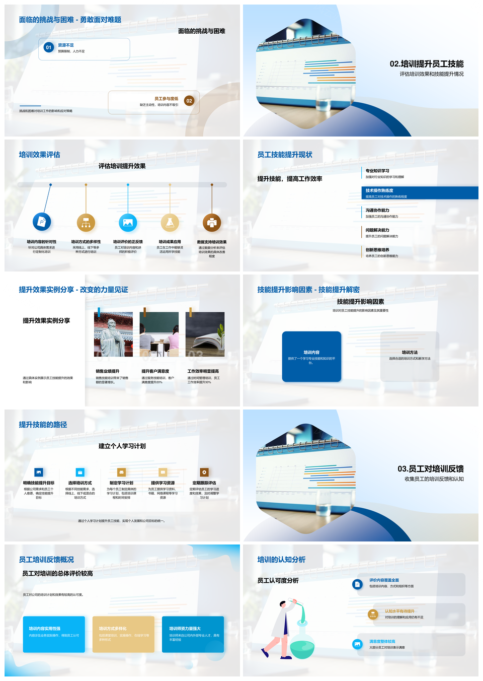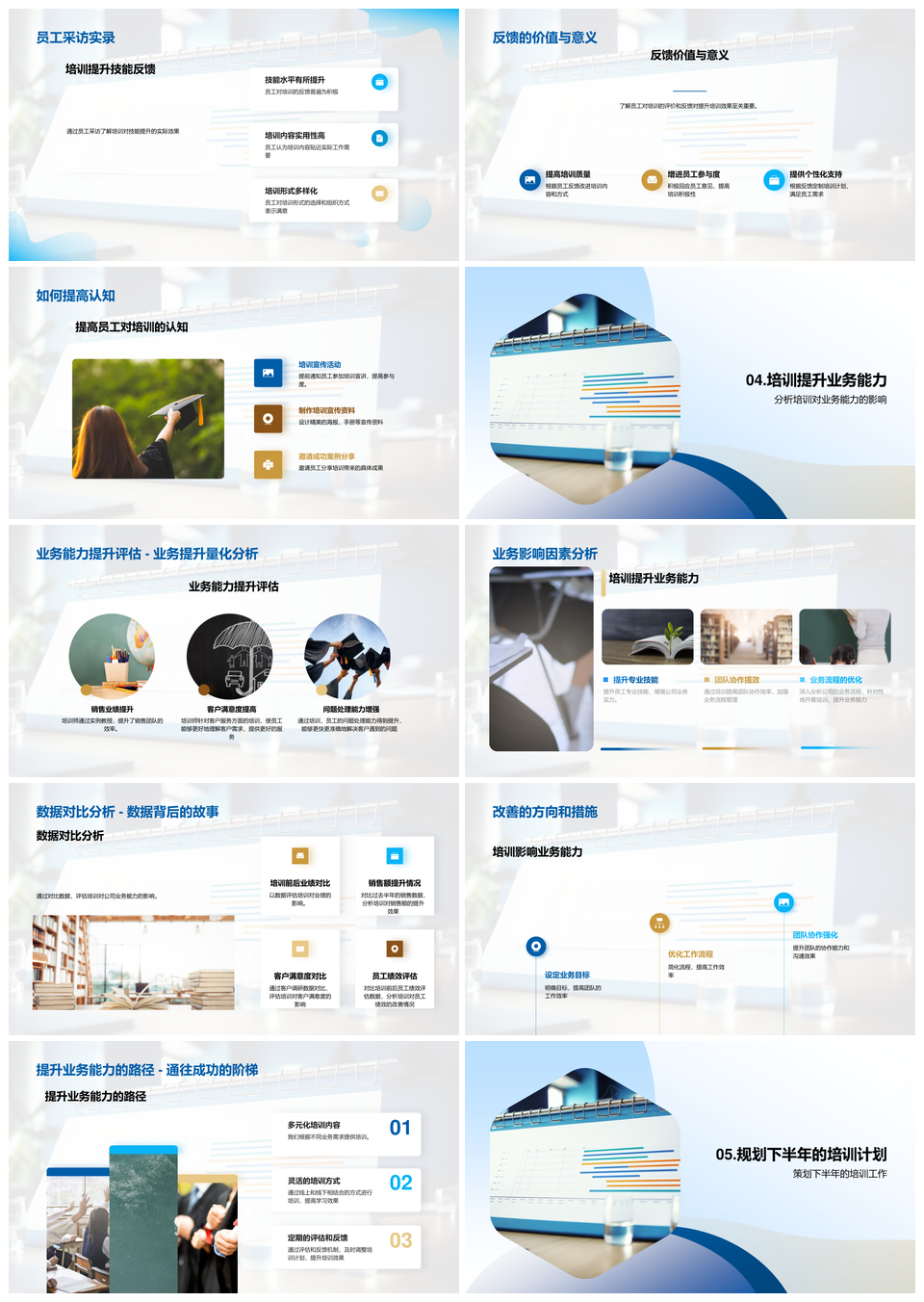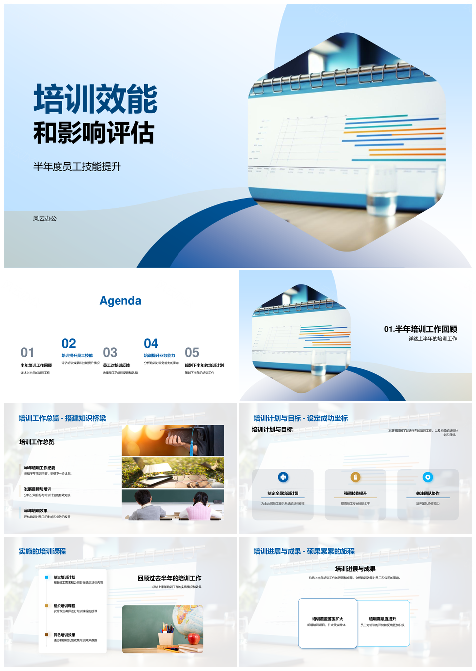 这是一张半年度培训效能影响评估与员工技能提升总结PPT模板,包含半年度、培训、效能、影响、评估、员工、技能、提升、总结等主题内容,也可用作半年度培训效能影响评估、培训效能影响评估、员工技能提升总结、半年度培训效能评估、效能影响评估、员工技能提升、技能提升总结、半年度培训效能、培训效能影响、半年度培训评估、培训效能评估、半年度培训、培训效能、效能影响、影响评估等PPT场景使用。 风云办公提供的半年度培训效能影响评估与员工技能提升总结PPT模板,下载格式为pptx,一共33页,作品中文字及图均可以修改和编辑,图片更改请在作品中右键图片并更换,文字修改请直接点击文字进行修改。