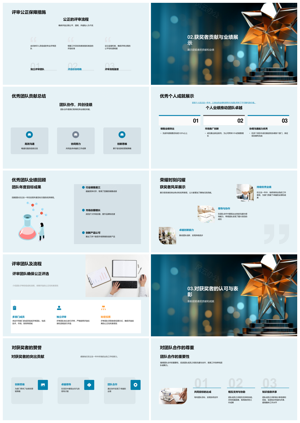 优秀团队策略考核评价关键绩效奖杯评选PPT模板