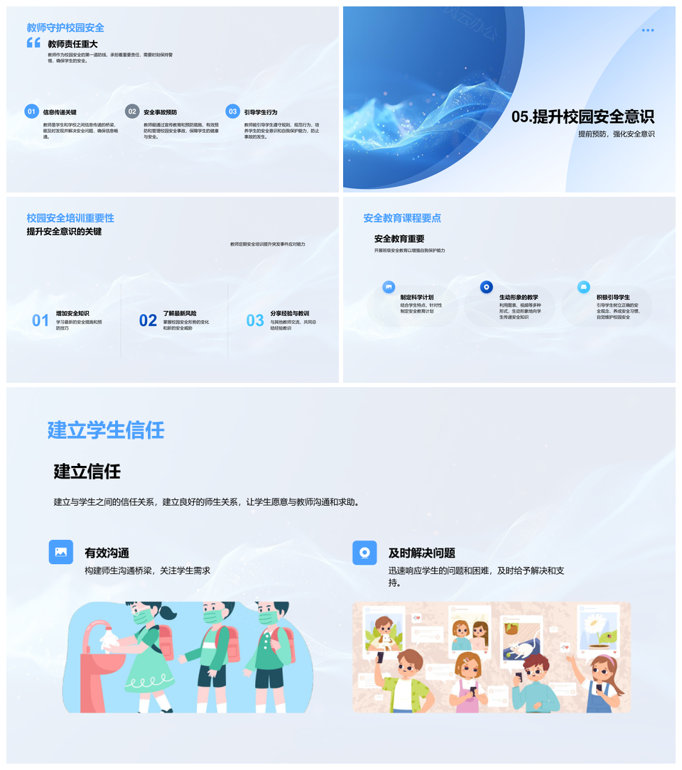 校园安全教师教育培训预防应对应急联络PPT模板推荐