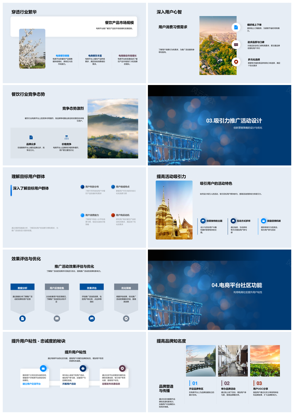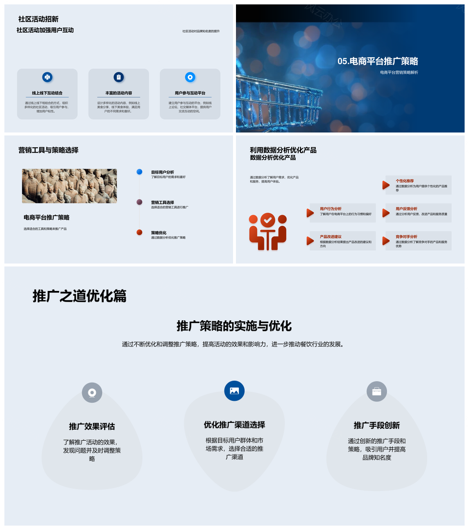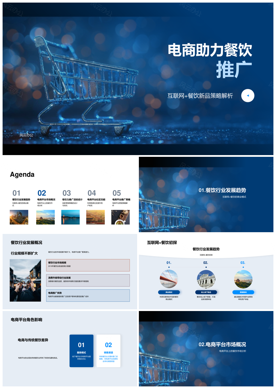 风云办公提供的电商平台助力餐饮行业推广策略优化PPT模板,下载格式为pptx,一共23页,作品中文字及图均可以修改和编辑,图片更改请在作品中右键图片并更换,文字修改请直接点击文字进行修改。