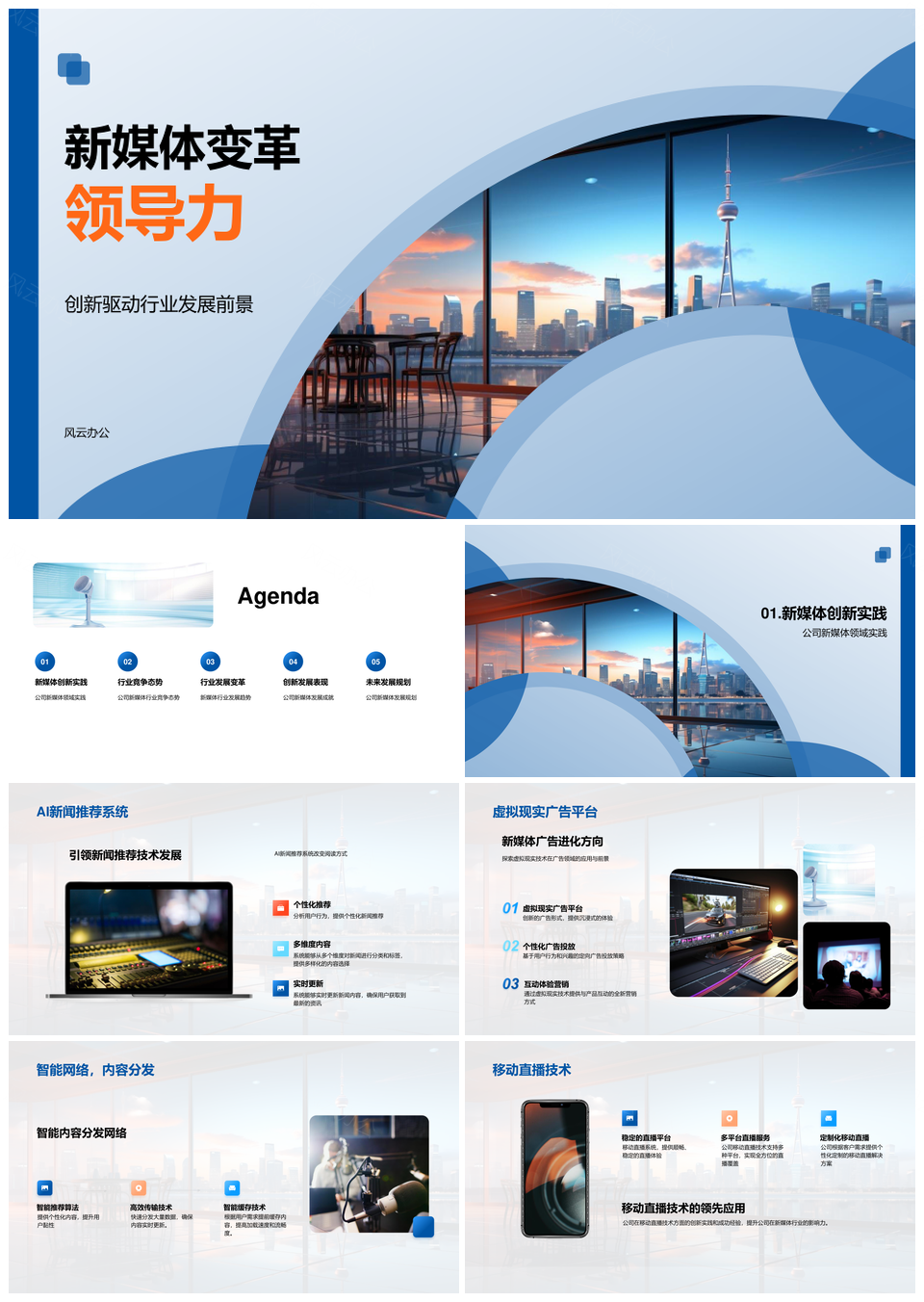 风云办公提供的AI虚拟现实驱动新媒体创新竞争前景PPT模板,下载格式为pptx,一共28页,作品中文字及图均可以修改和编辑,图片更改请在作品中右键图片并更换,文字修改请直接点击文字进行修改。