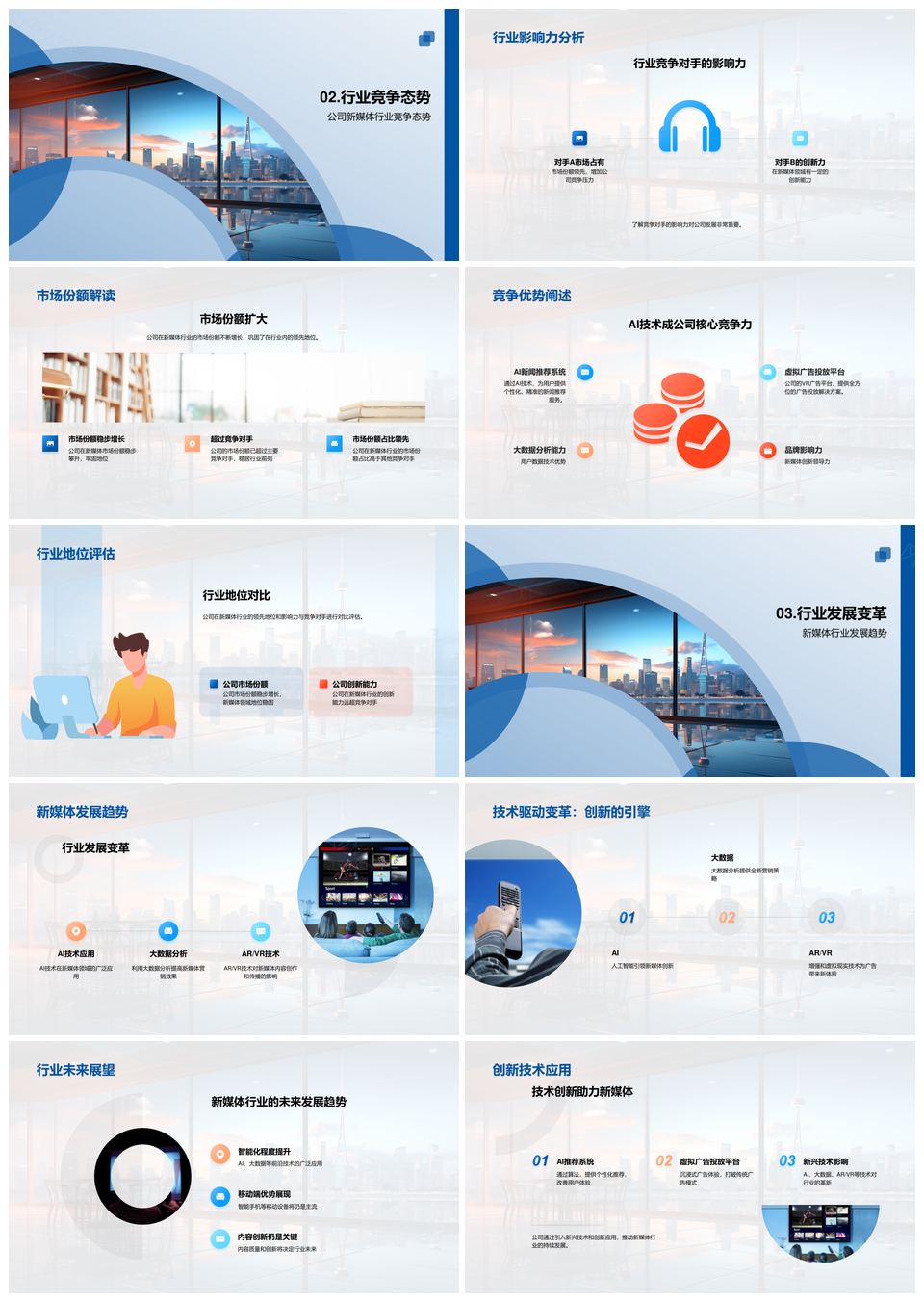 这是一张AI虚拟现实驱动新媒体创新竞争前景PPT模板,包含AI、虚拟现实、驱动、新媒体、创新、竞争、前景等主题内容,也可用作AI虚拟现实驱动新媒体、虚拟现实驱动新媒体创新、驱动新媒体创新竞争、新媒体创新竞争前景、AI驱动新媒体创新、AI新媒体创新竞争、虚拟现实驱动创新竞争、驱动创新竞争前景、AI虚拟现实创新竞争、新媒体创新前景、AI驱动创新前景、虚拟现实竞争前景、驱动新媒体创新、新媒体竞争前景、创新竞争前景等PPT场景使用。