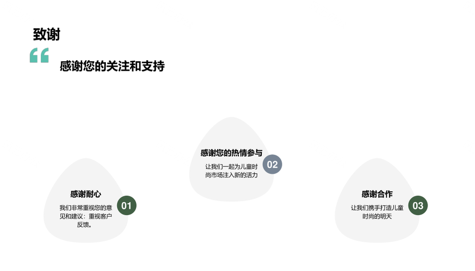 这是一张童装时尚趋势品牌定位环保材料新品设计营销PPT模板,包含童装、时尚趋势、品牌、定位、环保材料、新品设计、营销等主题内容,也可用作童装时尚趋势品牌定位、童装品牌定位环保材料、环保材料新品设计营销、童装新品设计营销趋势、品牌环保材料新品设计、时尚趋势新品设计营销、童装时尚环保材料设计、品牌定位新品设计营销、童装品牌环保材料新品、时尚品牌定位设计营销、环保材料新品营销趋势、童装设计营销品牌定位、时尚趋势品牌环保材料、新品设计营销品牌定位、童装环保材料设计新品等PPT场景使用。 风云办公提供的童装时尚趋势品牌定位环保材料新品设计营销PPT模板,下载格式为pptx,一共39页,作品中文字及图均可以修改和编辑,图片更改请在作品中右键图片并更换,文字修改请直接点击文字进行修改。