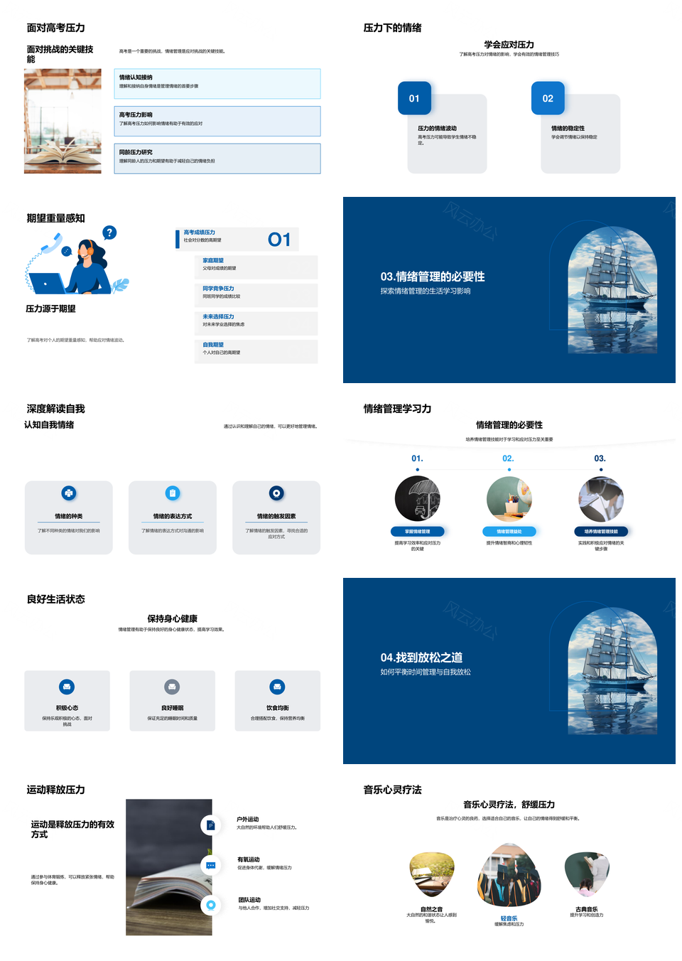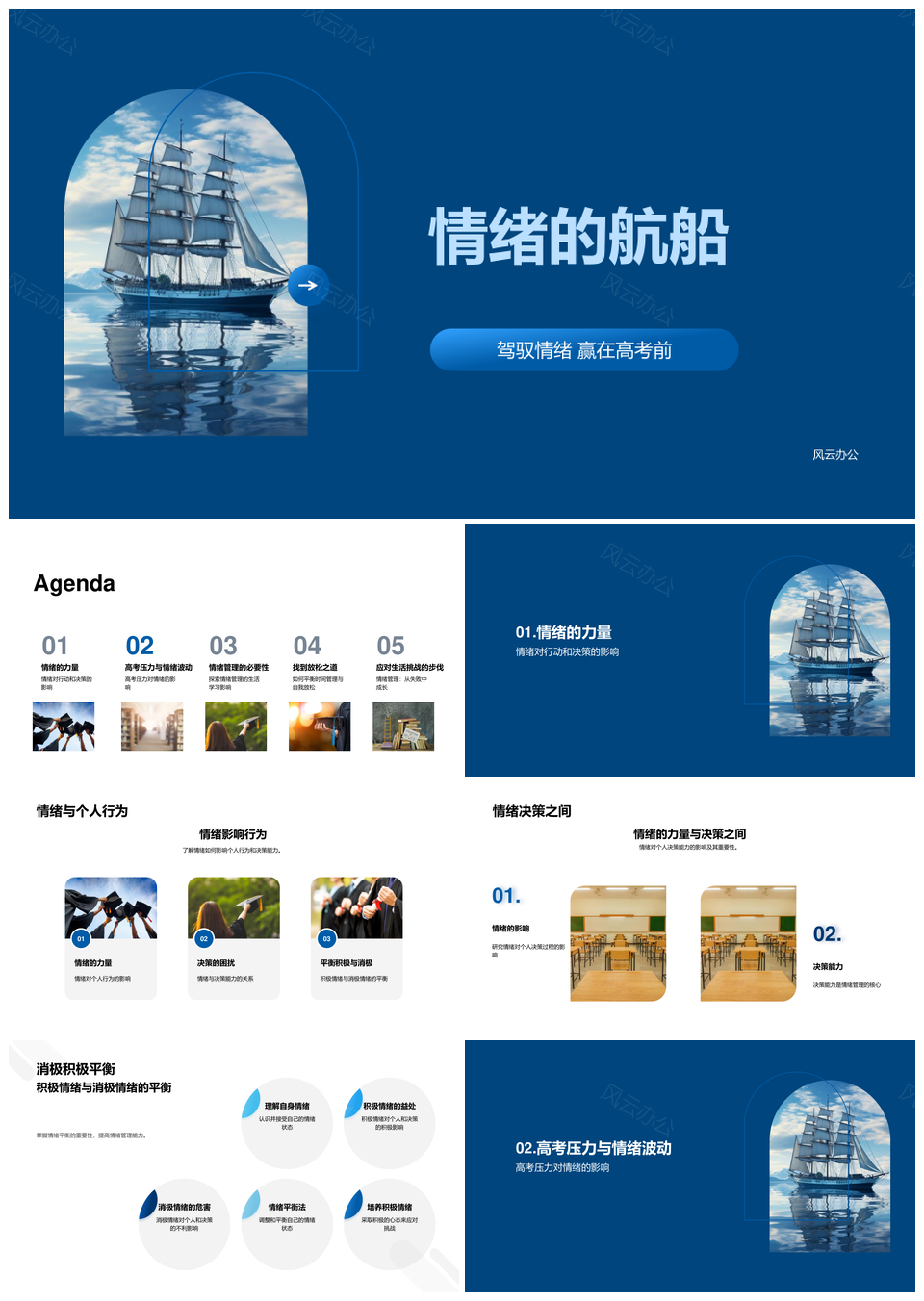 风云办公提供的高考驾驭情绪航船学习管理压力决策PPT模板,下载格式为pptx,一共23页,作品中文字及图均可以修改和编辑,图片更改请在作品中右键图片并更换,文字修改请直接点击文字进行修改。