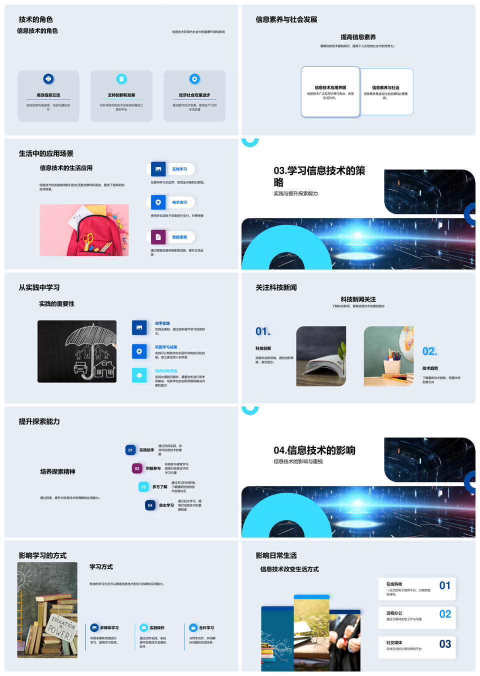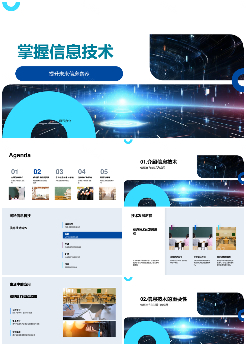 风云办公提供的六年级信息技术教育提升未来数字素养PPT模板,下载格式为pptx,一共23页,作品中文字及图均可以修改和编辑,图片更改请在作品中右键图片并更换,文字修改请直接点击文字进行修改。