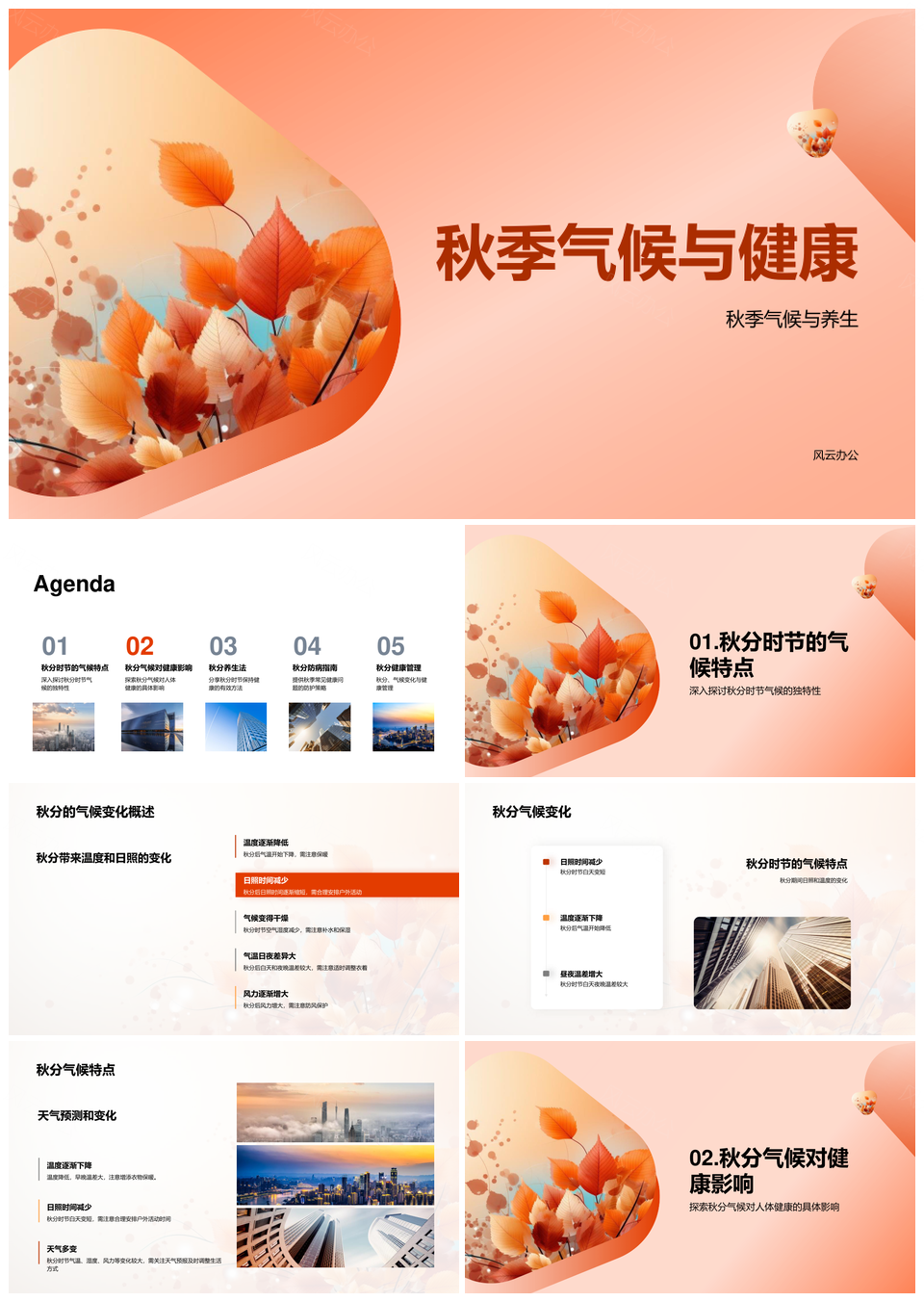风云办公提供的秋分健康养生防病调饮食运动护心理PPT模板,下载格式为pptx,一共23页,作品中文字及图均可以修改和编辑,图片更改请在作品中右键图片并更换,文字修改请直接点击文字进行修改。