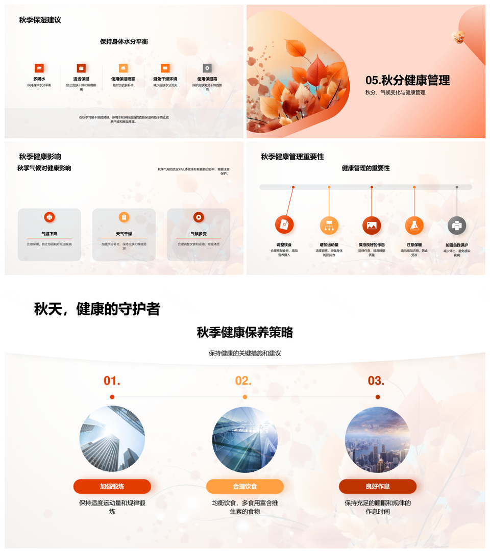 这是一张秋分健康养生防病调饮食运动护心理PPT模板,包含秋分、健康、养生、防病、调饮食、运动、护心理等主题内容,也可用作秋分健康养生防病、健康养生防病饮食、养生防病饮食运动、防病饮食运动心理、秋分健康养生、健康养生防病、养生防病饮食、防病饮食运动、饮食运动心理、秋分饮食运动、健康饮食运动、养生运动心理、秋分健康、健康养生、饮食运动等PPT场景使用。
