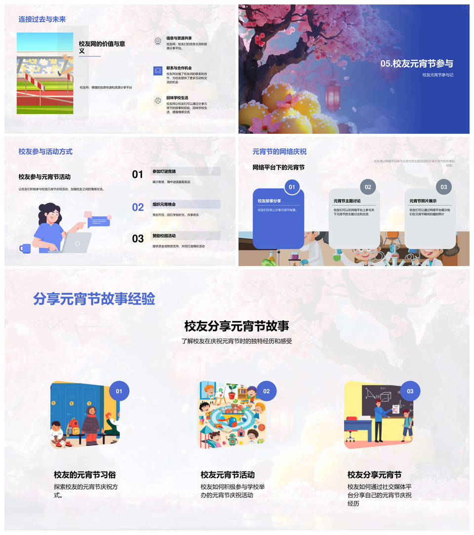 这是一张校友校园元宵灯会史教培灯谜汤圆PPT模板,包含校友、校园、元宵灯会、史教培、灯谜、汤圆等主题内容,也可用作校友校园元宵灯会、校园元宵灯会汤圆、校友元宵灯会汤圆、史教培灯谜汤圆、校友校园灯谜汤圆、校园元宵灯谜汤圆、校友校园史教培、元宵灯会灯谜汤圆、校园灯会史教培、校友校园汤圆、校园元宵灯谜、校友灯会汤圆、元宵灯谜汤圆、灯会史教培、灯谜汤圆等PPT场景使用。