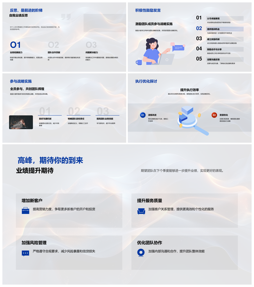 这是一张2025银行业绩季度回顾战略规划团队协作提升PPT模板,包含2025、银行、业绩、季度、回顾、战略、规划、团队、协作、提升等主题内容,也可用作2025银行业绩季度回顾、银行业绩季度回顾战略、季度回顾战略规划团队、战略规划团队协作提升、战略规划团队协作、团队协作提升季度回顾、2025银行业绩战略、季度战略规划协作、银行业绩战略规划、团队协作提升业绩、季度回顾战略协作、规划团队协作提升、战略团队协作提升、季度战略团队协作、业绩战略规划团队等PPT场景使用。 风云办公提供的2025银行业绩季度回顾战略规划团队协作提升PPT模板,下载格式为pptx,一共33页,作品中文字及图均可以修改和编辑,图片更改请在作品中右键图片并更换,文字修改请直接点击文字进行修改。