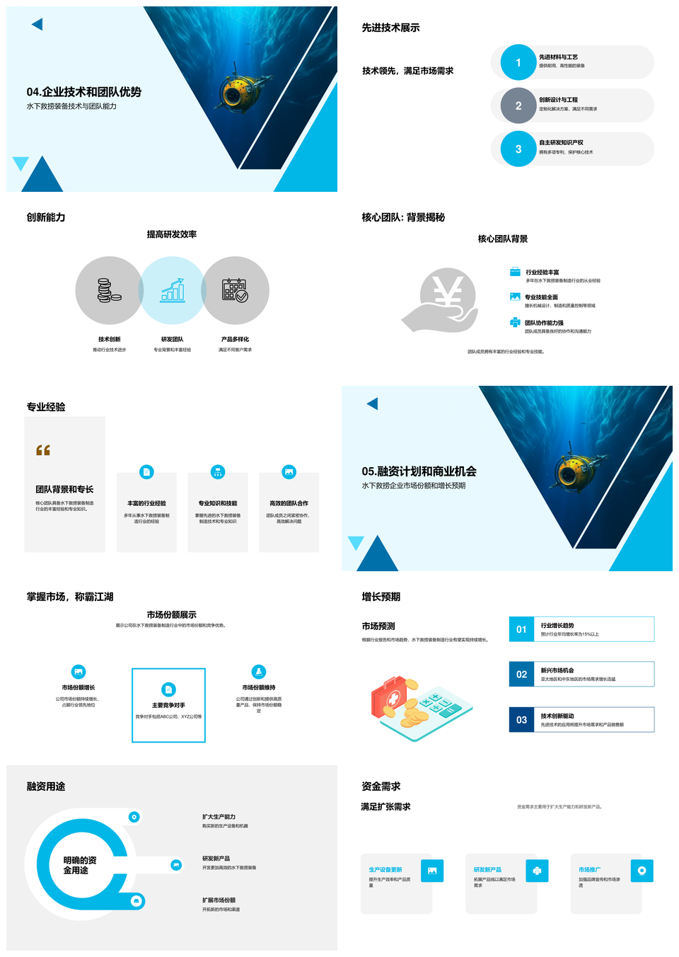 这是一张深海救捞ROV技术创新驱动市场融资增长PPT模板,包含深海救捞、ROV技术、创新、驱动、市场融资、增长等主题内容,也可用作深海救捞ROV技术创新、救捞ROV技术创新驱动、ROV技术创新驱动市场、创新驱动市场融资、驱动市场融资增长、深海救捞ROV技术、救捞ROV技术创新、ROV技术创新驱动、创新驱动市场、驱动市场融资、市场融资增长、深海救捞、救捞ROV技术、ROV技术创新、创新驱动等PPT场景使用。 风云办公提供的深海救捞ROV技术创新驱动市场融资增长PPT模板,下载格式为pptx,一共30页,作品中文字及图均可以修改和编辑,图片更改请在作品中右键图片并更换,文字修改请直接点击文字进行修改。