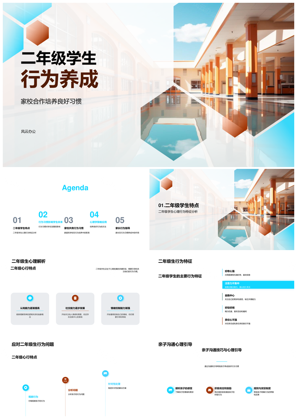 风云办公提供的家校共育二年级学生行为习惯养成PPT模板,下载格式为pptx,一共28页,作品中文字及图均可以修改和编辑,图片更改请在作品中右键图片并更换,文字修改请直接点击文字进行修改。