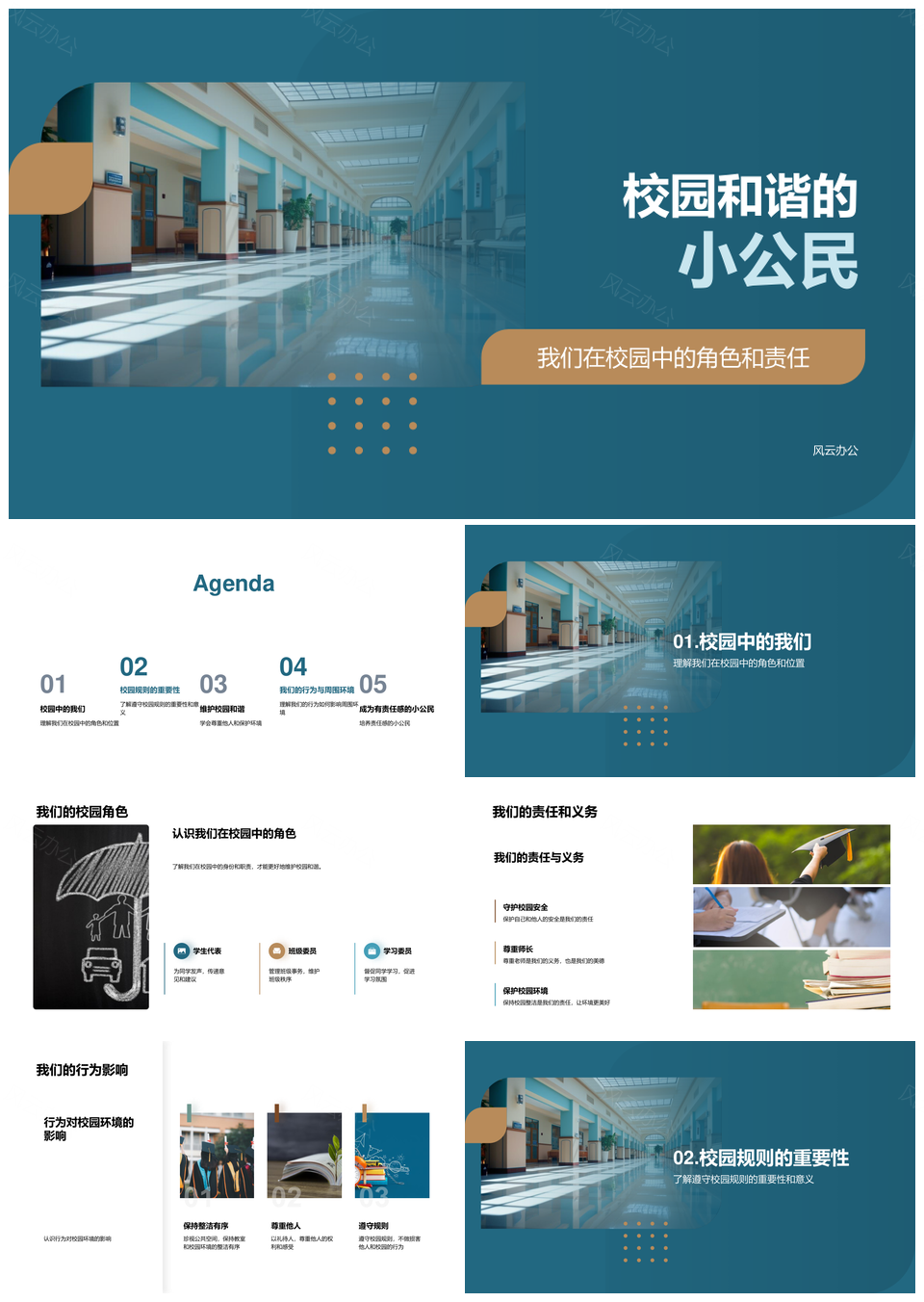 风云办公提供的校园小公民守规尽责护和谐PPT模板,下载格式为pptx,一共23页,作品中文字及图均可以修改和编辑,图片更改请在作品中右键图片并更换,文字修改请直接点击文字进行修改。