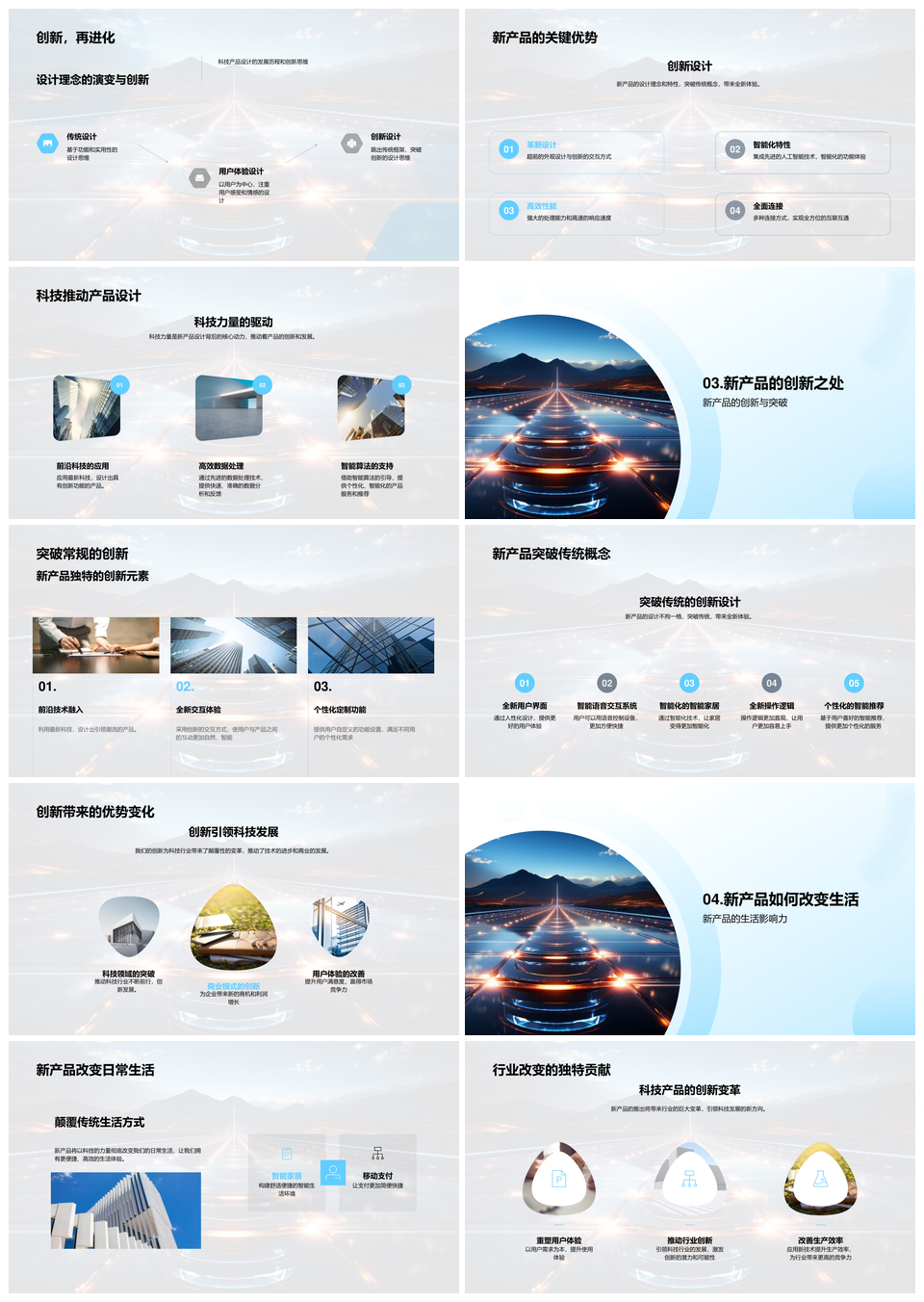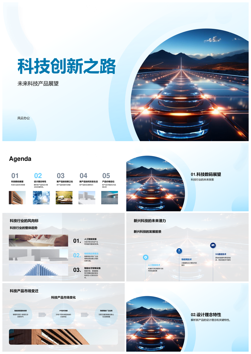 风云办公提供的未来科技产品创新设计展PPT模板,下载格式为pptx,一共23页,作品中文字及图均可以修改和编辑,图片更改请在作品中右键图片并更换,文字修改请直接点击文字进行修改。