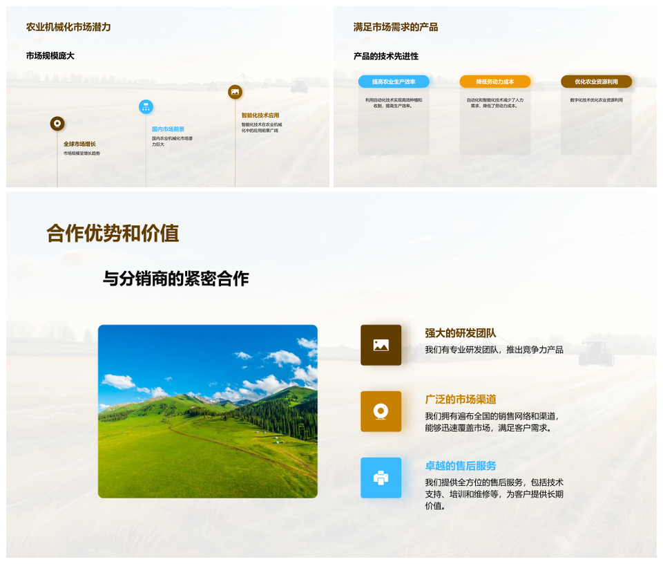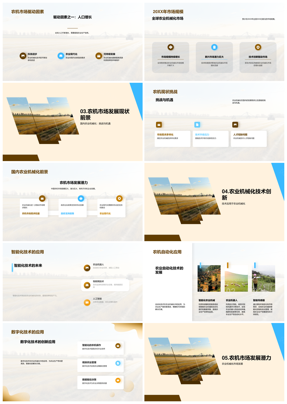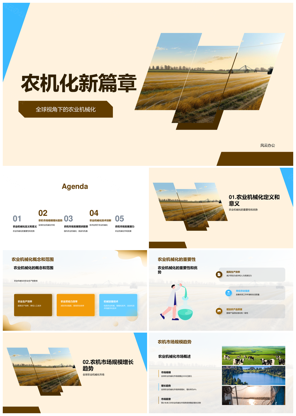 风云办公提供的农业机械智能化自动化革新未来PPT模板,下载格式为pptx,一共21页,作品中文字及图均可以修改和编辑,图片更改请在作品中右键图片并更换,文字修改请直接点击文字进行修改。