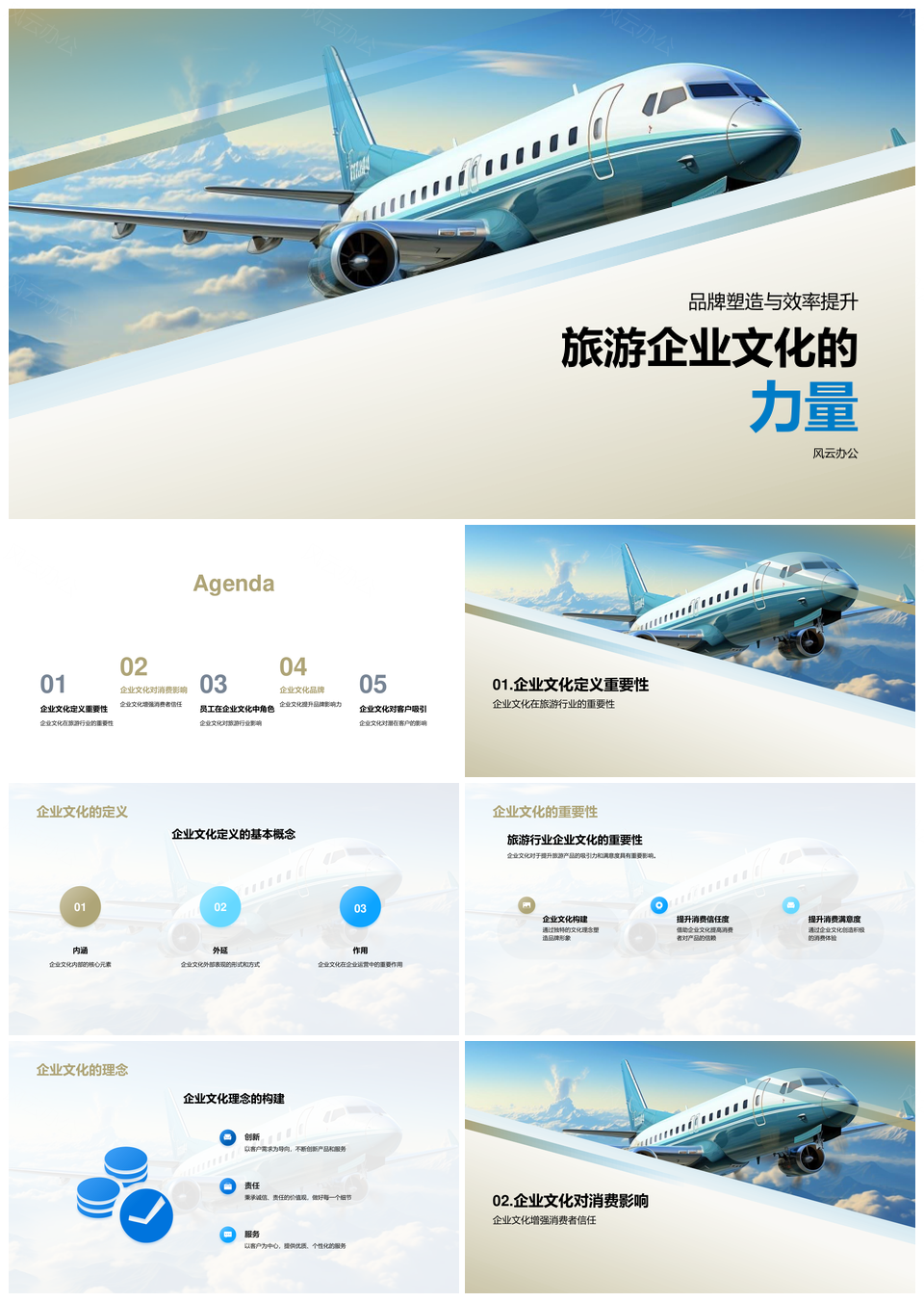 风云办公提供的旅游企业文化塑品牌提效增信赖满意PPT模板,下载格式为pptx,一共23页,作品中文字及图均可以修改和编辑,图片更改请在作品中右键图片并更换,文字修改请直接点击文字进行修改。