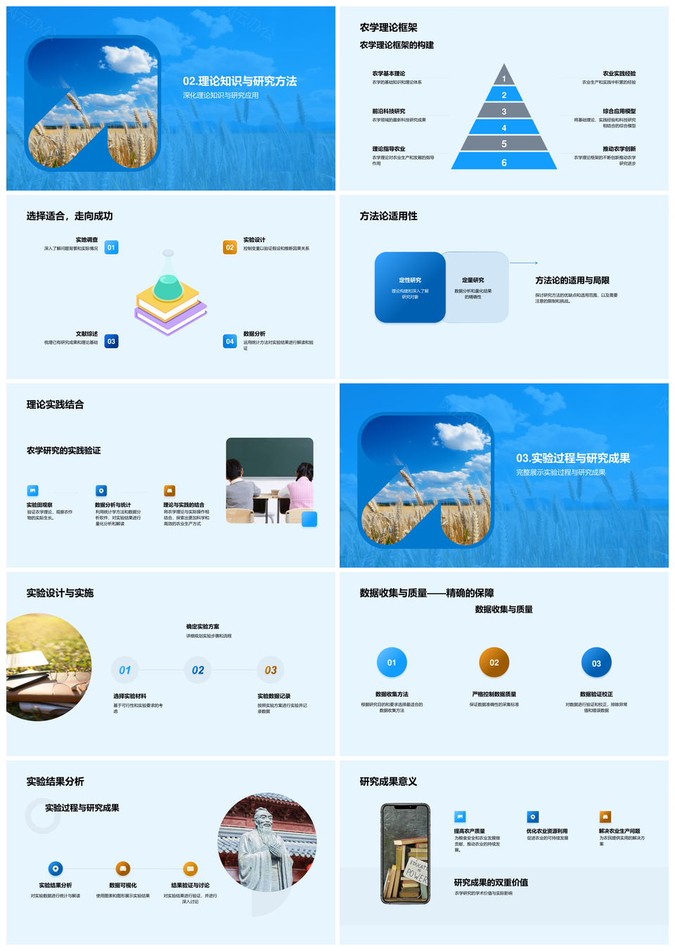 农学毕业答辩研究主题方法实验数据麦田PPT模板