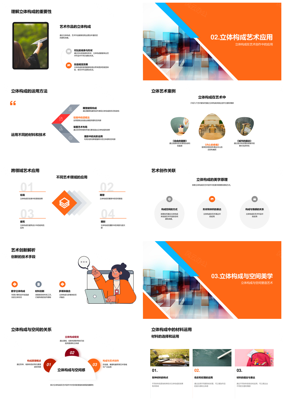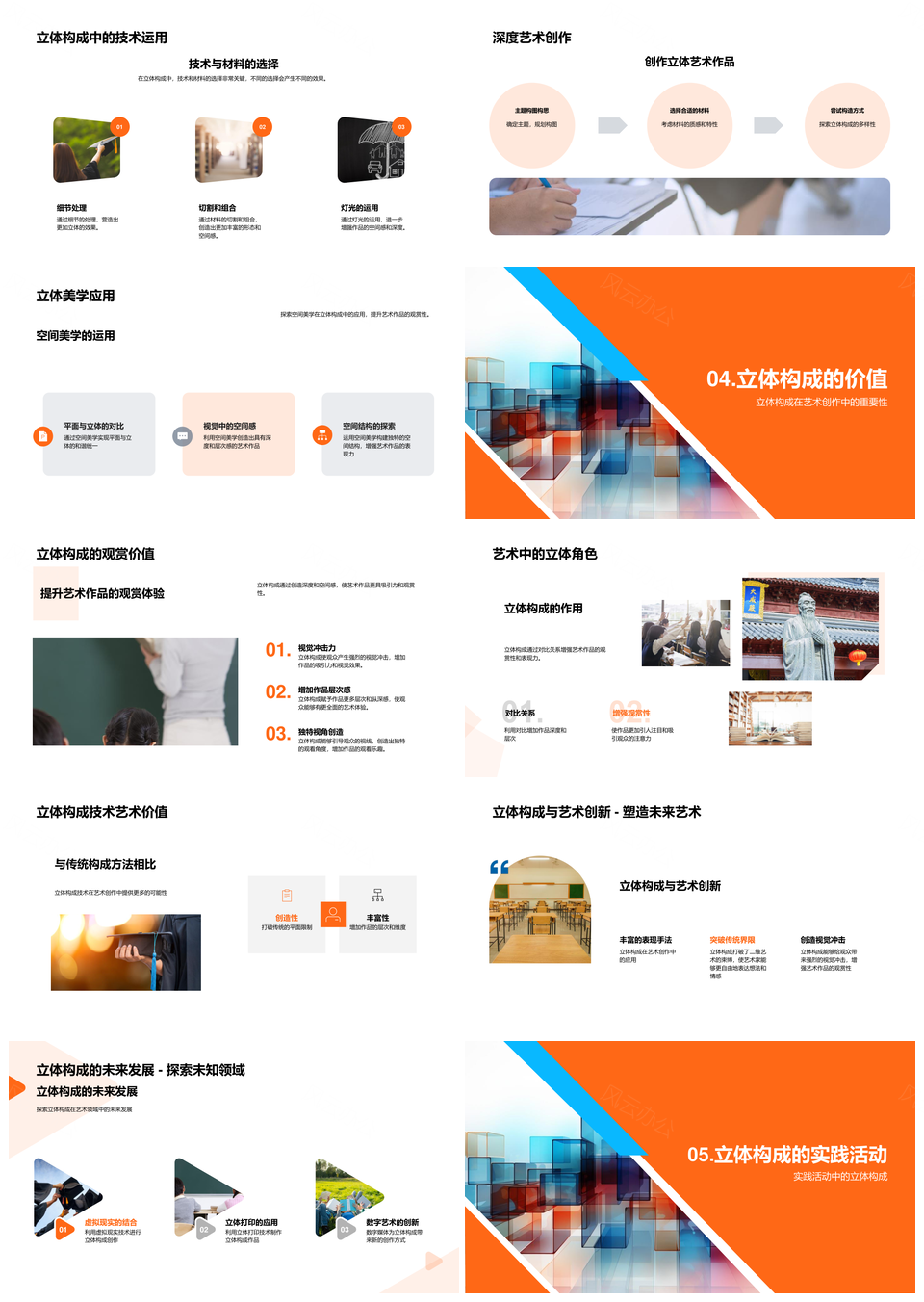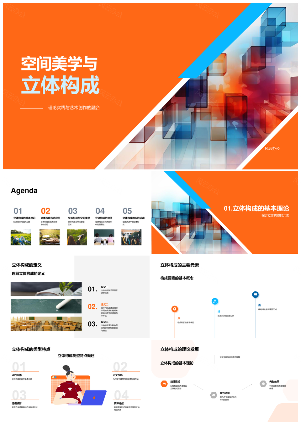 风云办公提供的空间美学立体构成艺术创作理论实践PPT模板,下载格式为pptx,一共33页,作品中文字及图均可以修改和编辑,图片更改请在作品中右键图片并更换,文字修改请直接点击文字进行修改。