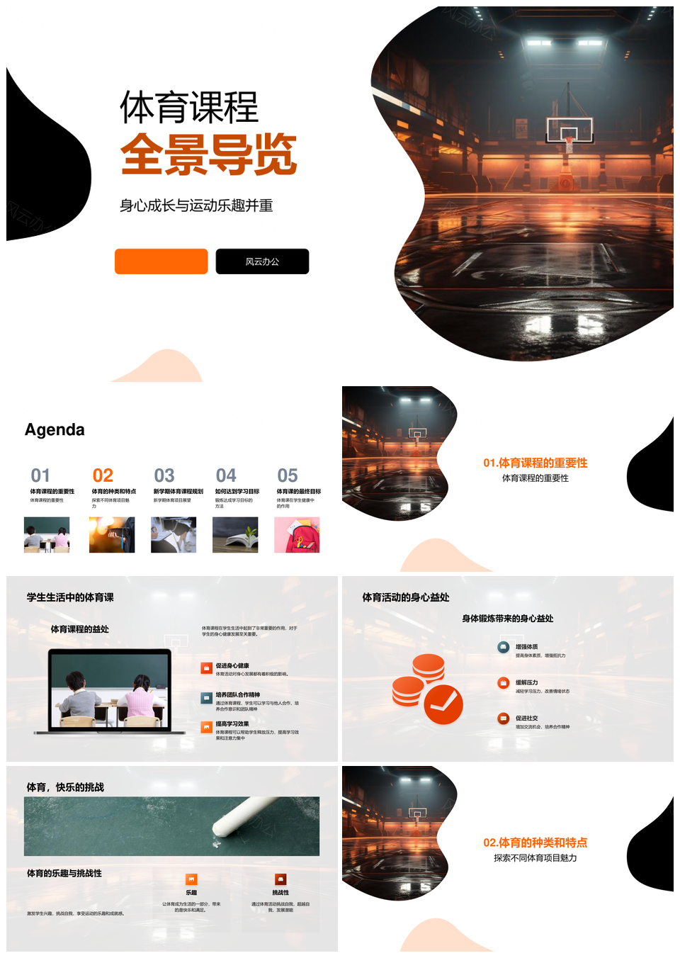 风云办公提供的体育课程乐享篮球足球田径身心成长PPT模板,下载格式为pptx,一共26页,作品中文字及图均可以修改和编辑,图片更改请在作品中右键图片并更换,文字修改请直接点击文字进行修改。