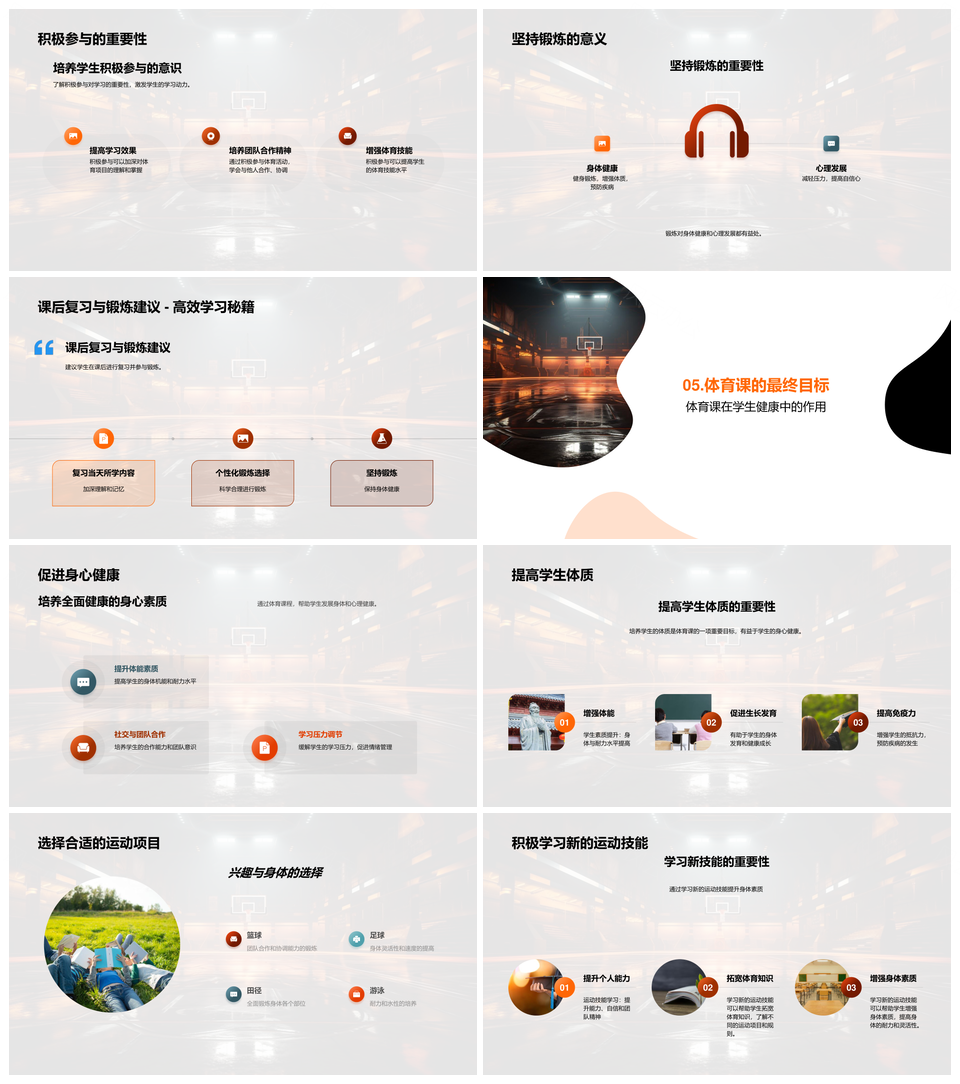 这是一张体育课程乐享篮球足球田径身心成长PPT模板,包含体育课程、乐享、篮球、足球、田径、身心、成长等主题内容,也可用作体育课程乐享篮球足球田径、体育课程乐享篮球足球、体育课程乐享篮球、课程乐享篮球足球田径、课程乐享篮球足球、课程乐享篮球、乐享篮球足球田径、乐享篮球足球、篮球足球田径身心、篮球足球田径、足球田径身心成长、足球田径身心、田径身心成长、体育课程乐享、体育课程、课程乐享、乐享篮球、篮球足球等PPT场景使用。