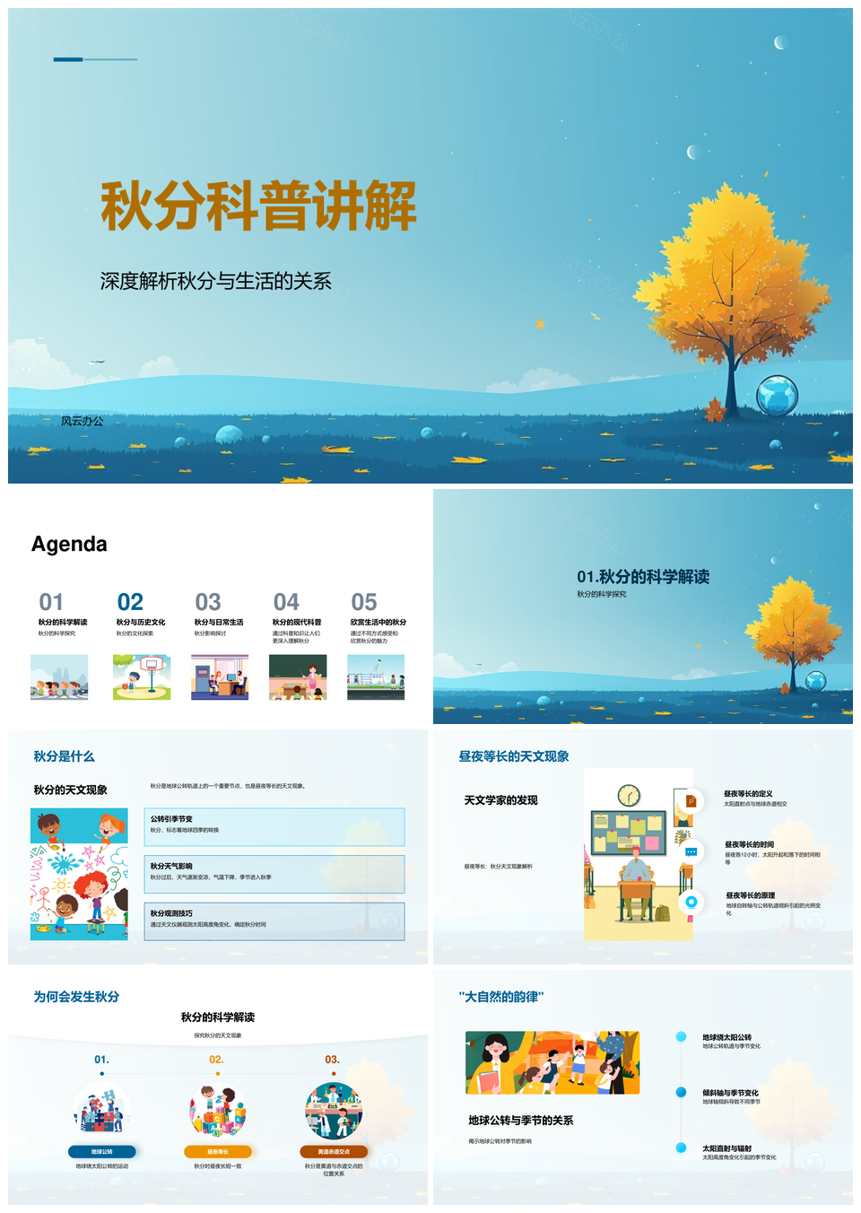 秋分科学实验探秘地球轨道昼夜等长天文PPT模板
