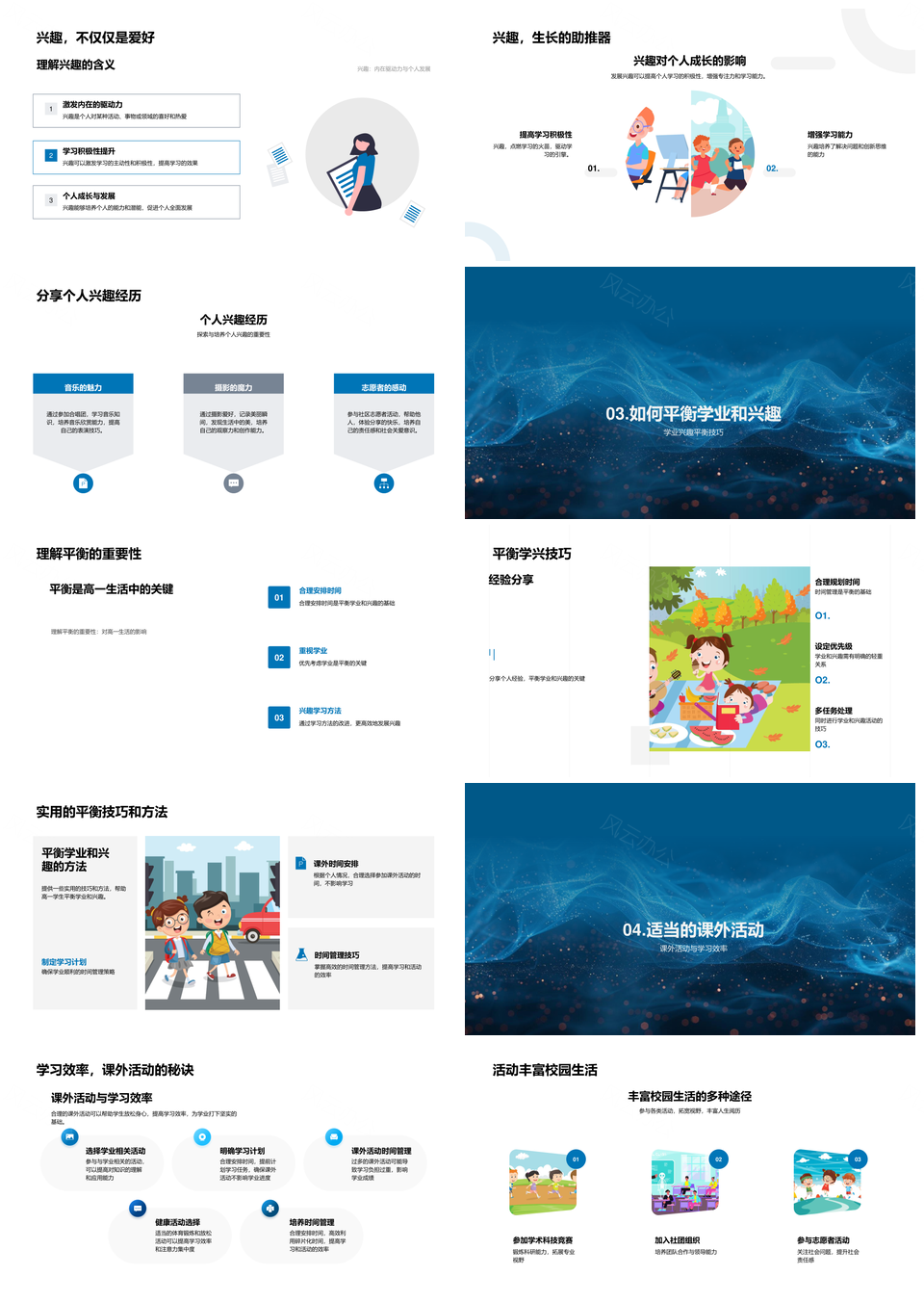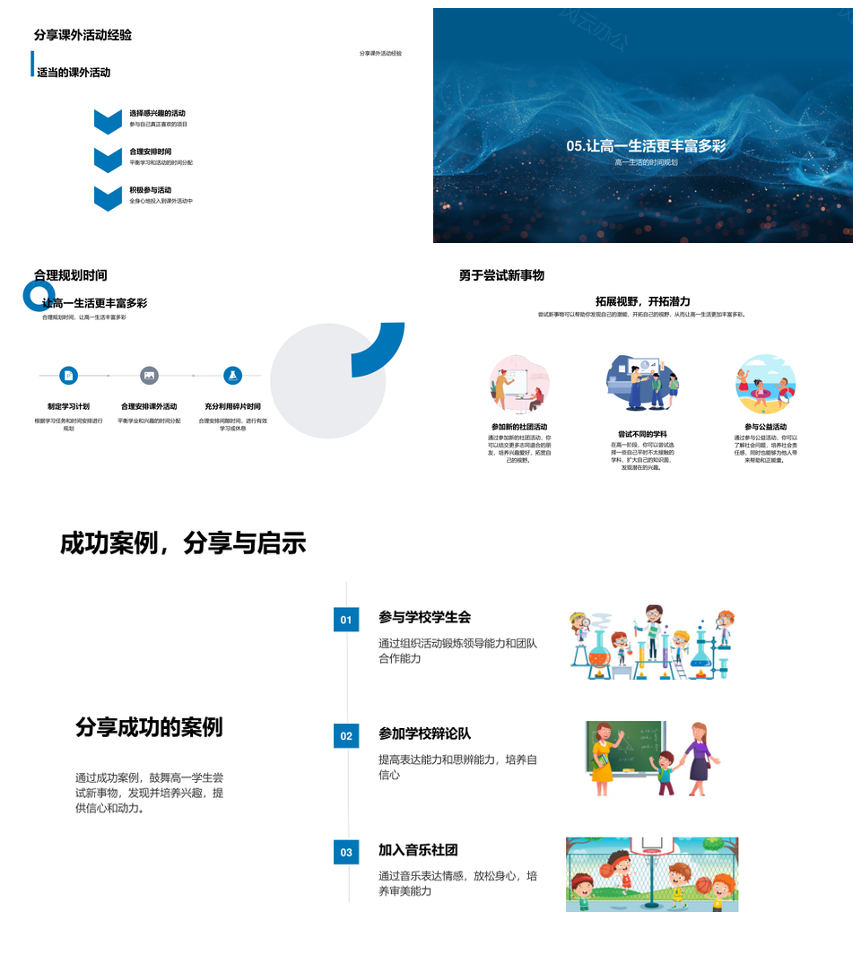高一学业生活平衡时间管理书海高效减压课外兴趣经验PPT模板