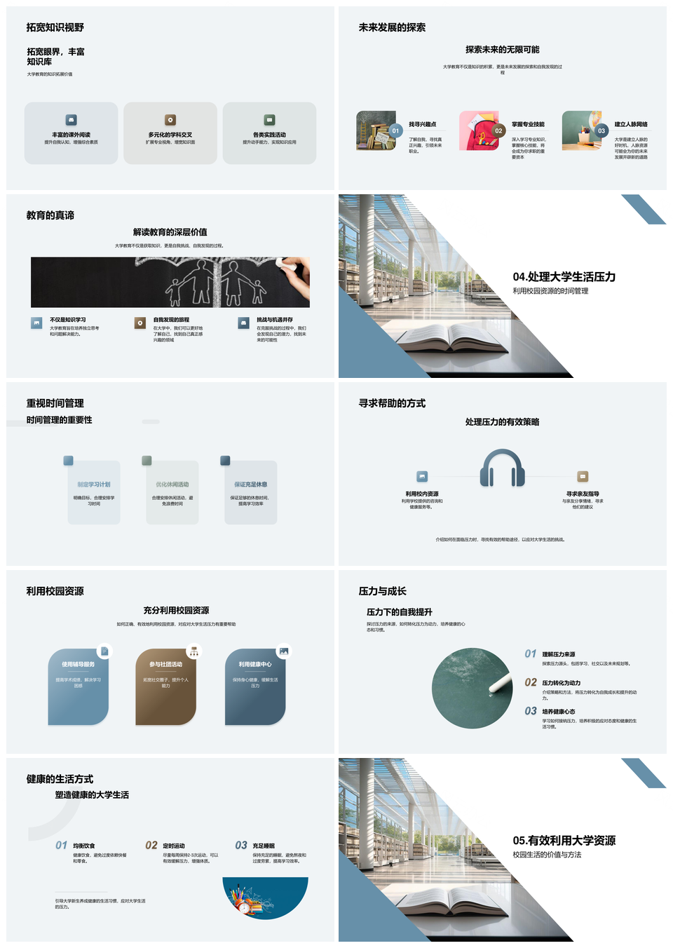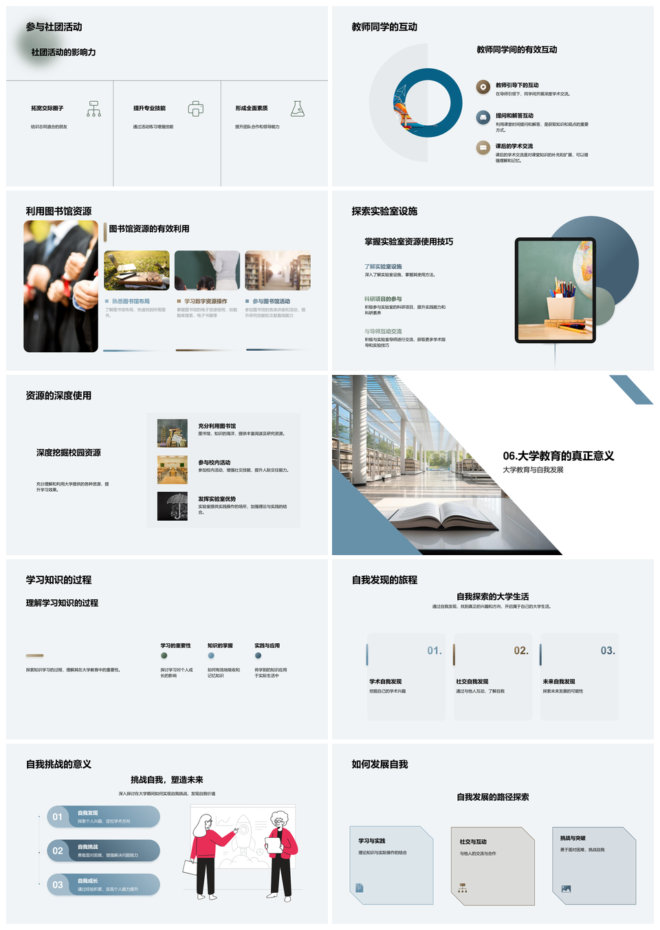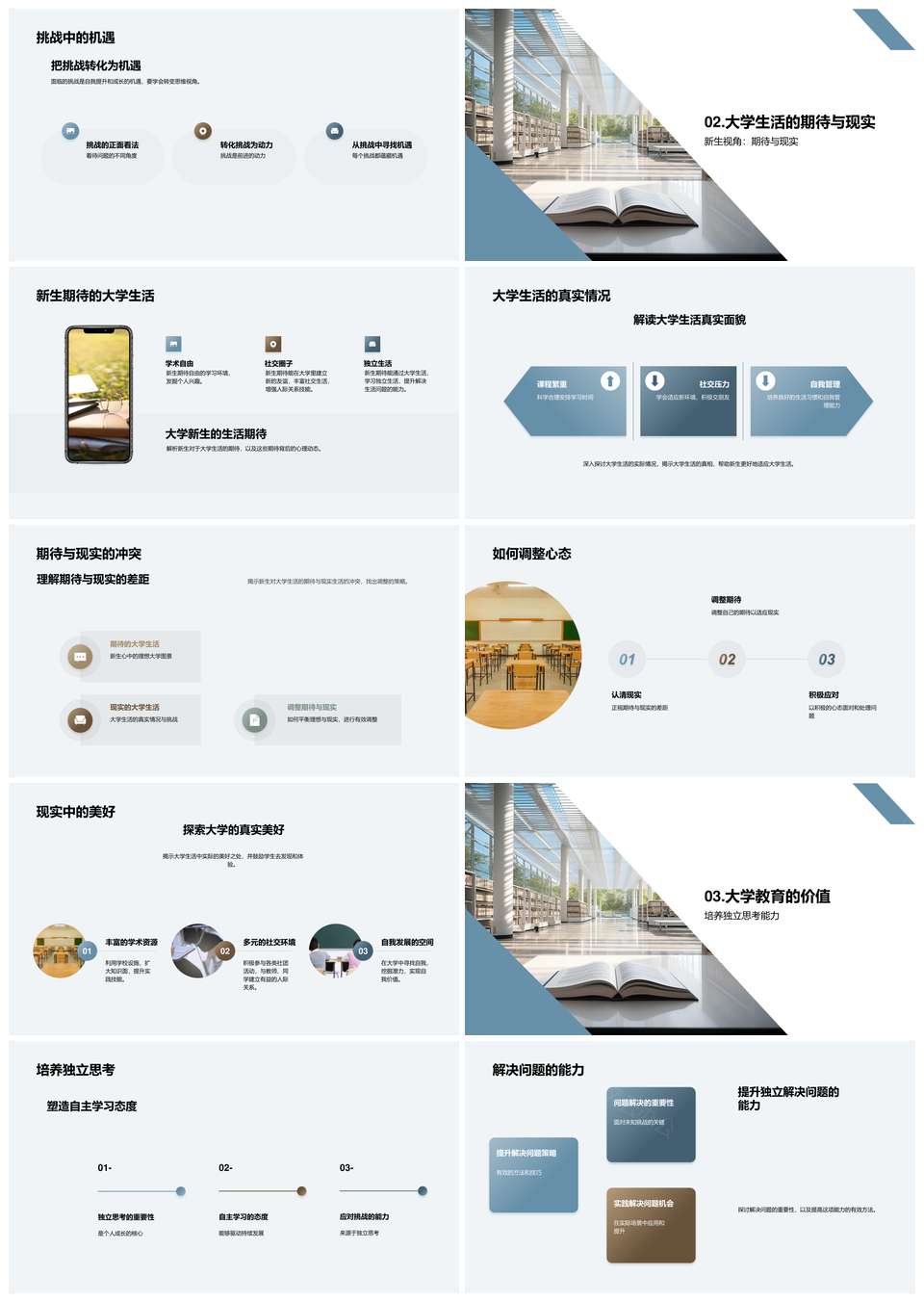 大学生活教育挑战与新生自我发现PPT模板推荐