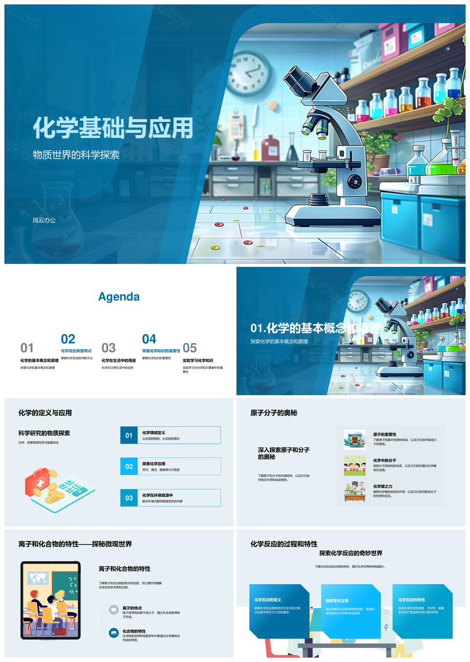 风云办公提供的化学反应原子分子离子化合物基础PPT模板,下载格式为pptx,一共33页,作品中文字及图均可以修改和编辑,图片更改请在作品中右键图片并更换,文字修改请直接点击文字进行修改。