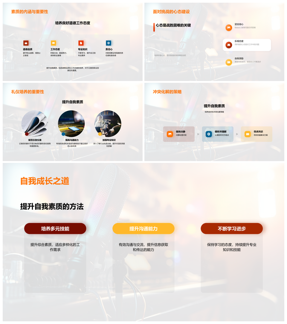这是一张新闻记者采访礼仪与冲突处理素质提升PPT模板,包含新闻记者、采访、礼仪、冲突、处理、素质、提升等主题内容,也可用作新闻记者采访礼仪冲突处理、新闻记者冲突处理素质提升、采访礼仪冲突处理素质提升、新闻记者采访礼仪素质提升、礼仪冲突处理素质提升、新闻记者采访礼仪、新闻记者礼仪冲突处理、采访礼仪素质提升、冲突处理素质提升、新闻记者素质提升、新闻记者采访冲突处理、采访冲突处理素质提升、新闻记者礼仪素质提升、礼仪素质提升、新闻记者采访素质提升等PPT场景使用。