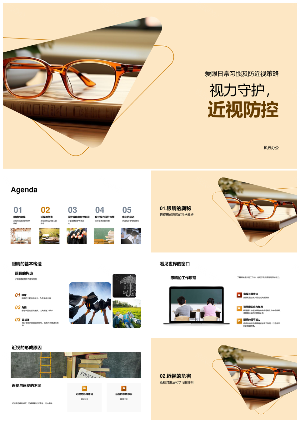 这是一张视力守护眼构造近视成因科学护眼防控矫正PPT模板,包含视力守护眼、构造、近视、成因、科学、护眼、防控、矫正等主题内容,也可用作科学护眼防控矫正、视力守护眼构造、守护眼构造近视、眼构造近视成因、近视成因科学护眼、科学护眼防控、护眼防控矫正、视力守护、守护眼构造、眼构造近视、近视成因、成因科学护眼、科学护眼、护眼防控、防控矫正等PPT场景使用。 风云办公提供的视力守护眼构造近视成因科学护眼防控矫正PPT模板,下载格式为pptx,一共23页,作品中文字及图均可以修改和编辑,图片更改请在作品中右键图片并更换,文字修改请直接点击文字进行修改。