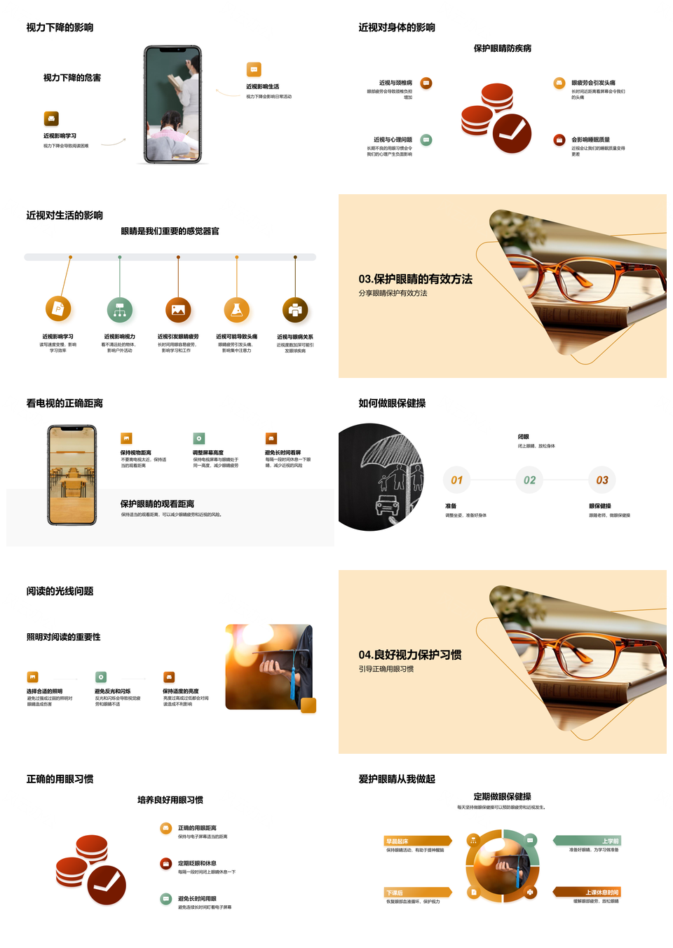 防控近视护眼端正姿势远离屏幕多户外合理休息PPT模板