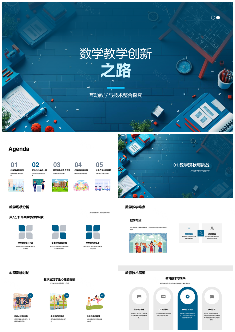 风云办公提供的数学互动教学技术整合创新PPT模板,下载格式为pptx,一共24页,作品中文字及图均可以修改和编辑,图片更改请在作品中右键图片并更换,文字修改请直接点击文字进行修改。