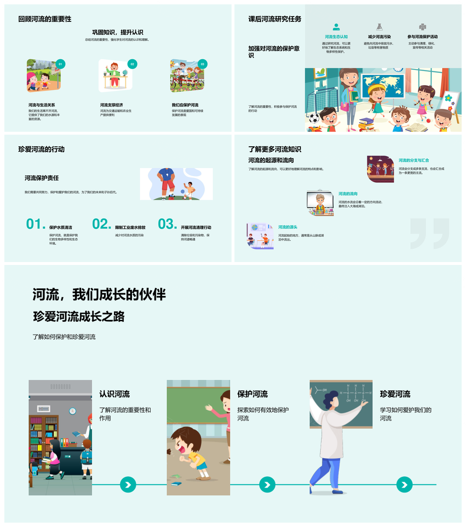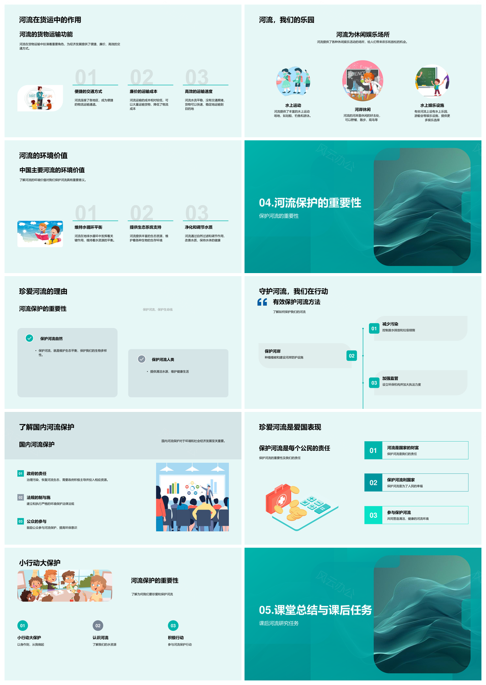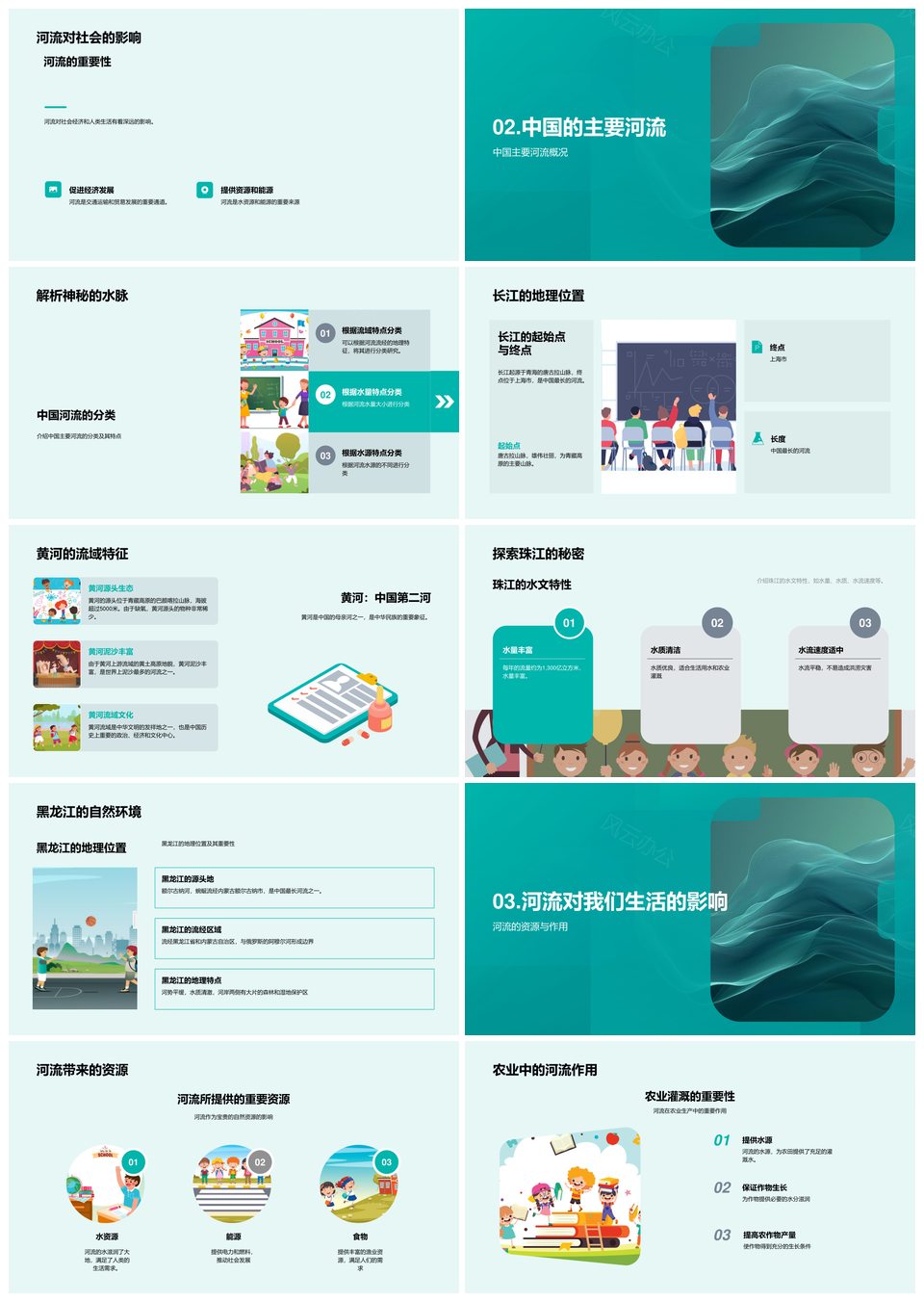 小学生中国河流长江黄河珠江黑龙江教学保护资源PPT模板推荐