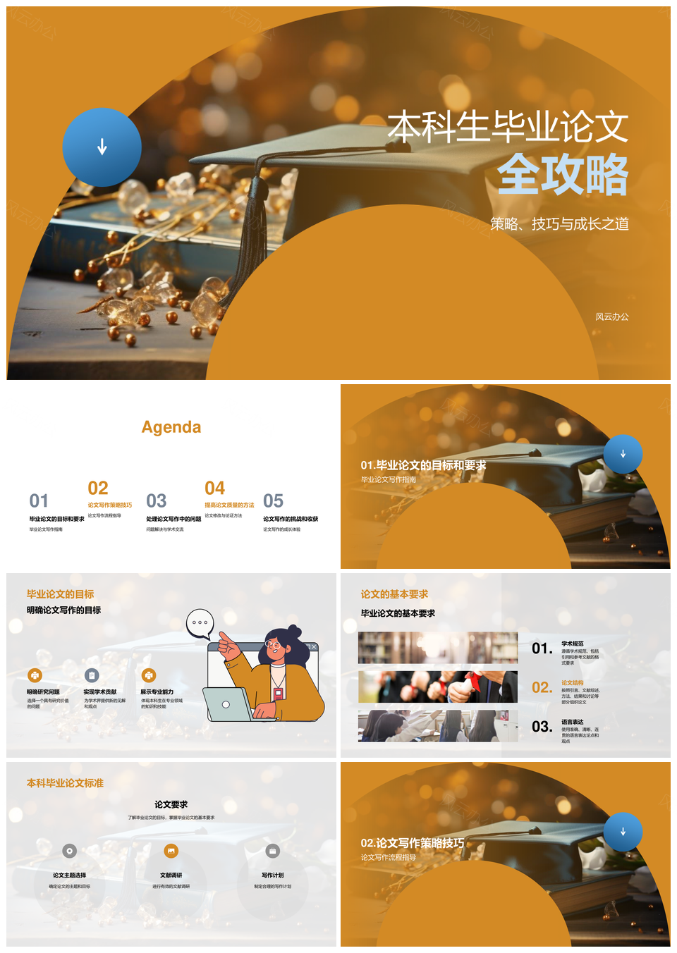 风云办公提供的本科生毕业论文写作策略技巧成长指南PPT模板,下载格式为pptx,一共24页,作品中文字及图均可以修改和编辑,图片更改请在作品中右键图片并更换,文字修改请直接点击文字进行修改。