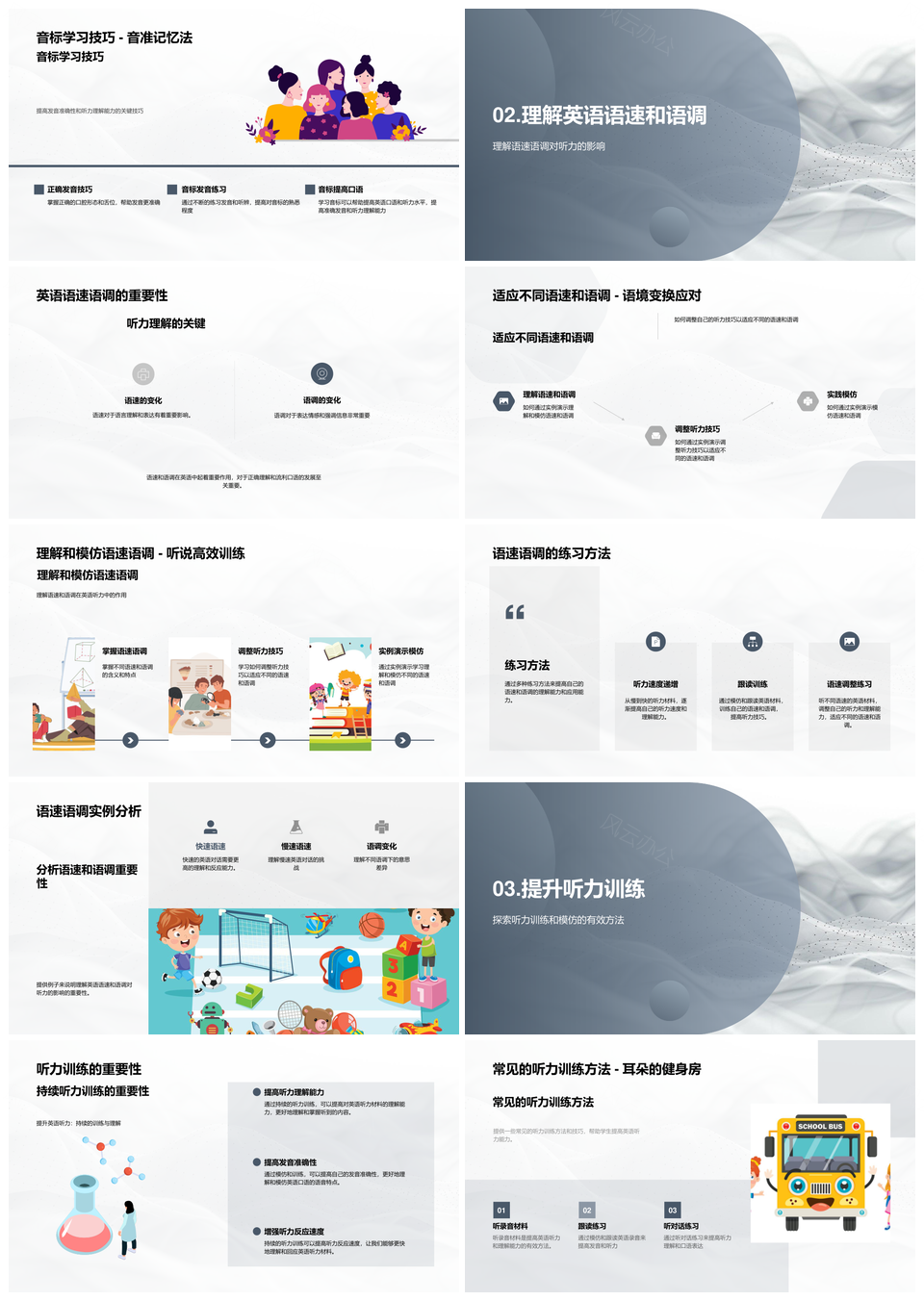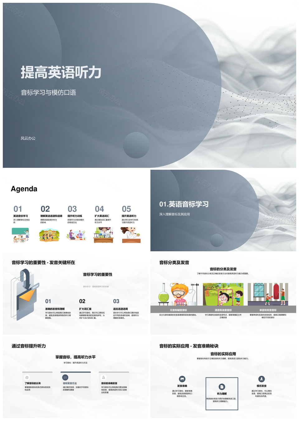 这是一张英语听力音标模仿口语语速语调训练词汇量PPT模板,包含英语听力、音标、模仿、口语、语速、语调、训练、词汇量等主题内容,也可用作英语听力音标模仿口语、英语听力音标模仿、英语听力口语语速语调、音标模仿口语语速、模仿口语语速语调、训练词汇量英语听力、音标模仿口语训练、语调训练词汇量英语、听力音标模仿口语、口语语速语调训练、英语听力口语训练、音标模仿语速语调、听力口语语速训练、英语听力训练词汇量、语调训练词汇量等PPT场景使用。 风云办公提供的英语听力音标模仿口语语速语调训练词汇量PPT模板,下载格式为pptx,一共33页,作品中文字及图均可以修改和编辑,图片更改请在作品中右键图片并更换,文字修改请直接点击文字进行修改。