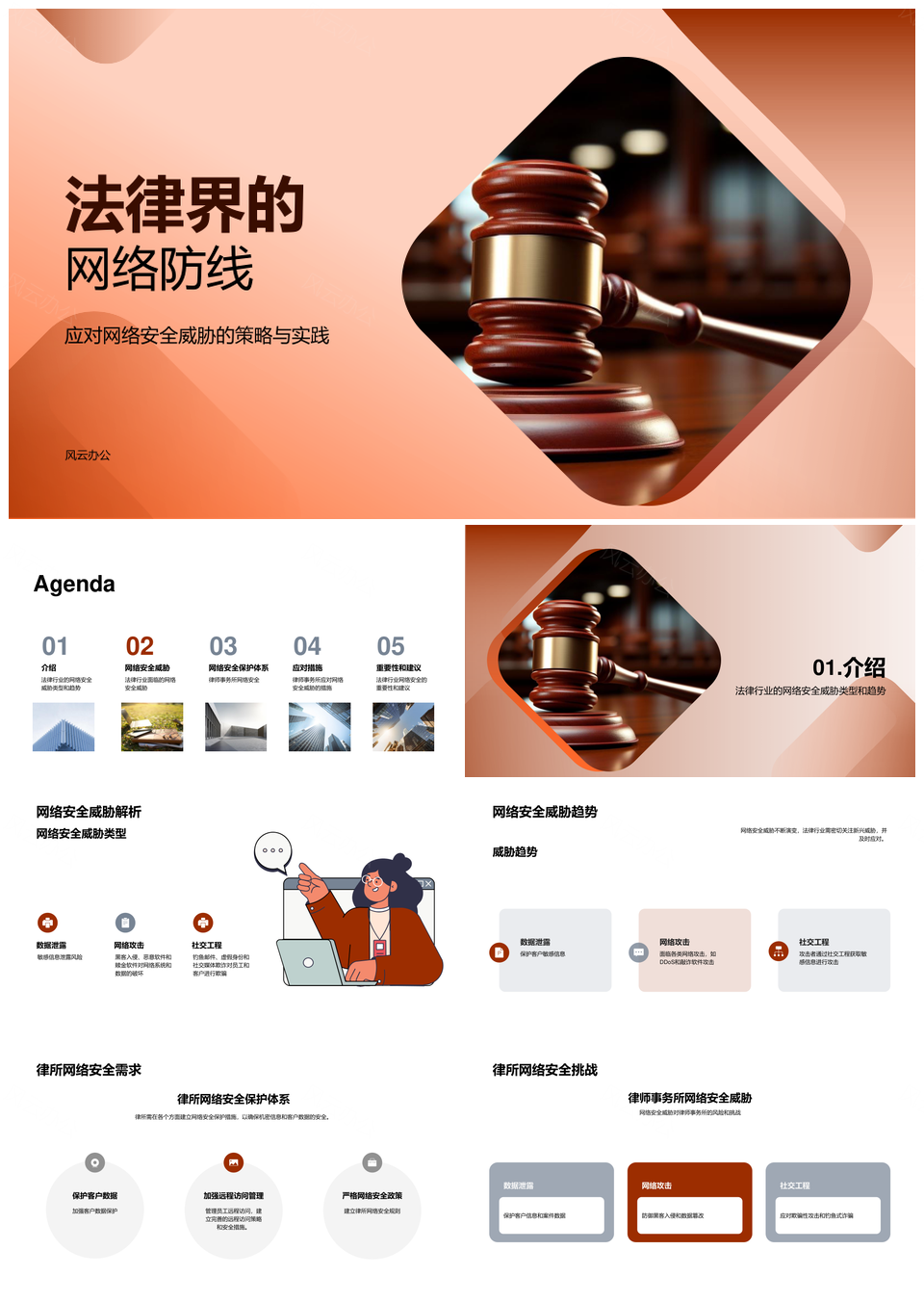 风云办公提供的法律业网络安全防护抵御攻击数据泄露PPT模板,下载格式为pptx,一共27页,作品中文字及图均可以修改和编辑,图片更改请在作品中右键图片并更换,文字修改请直接点击文字进行修改。