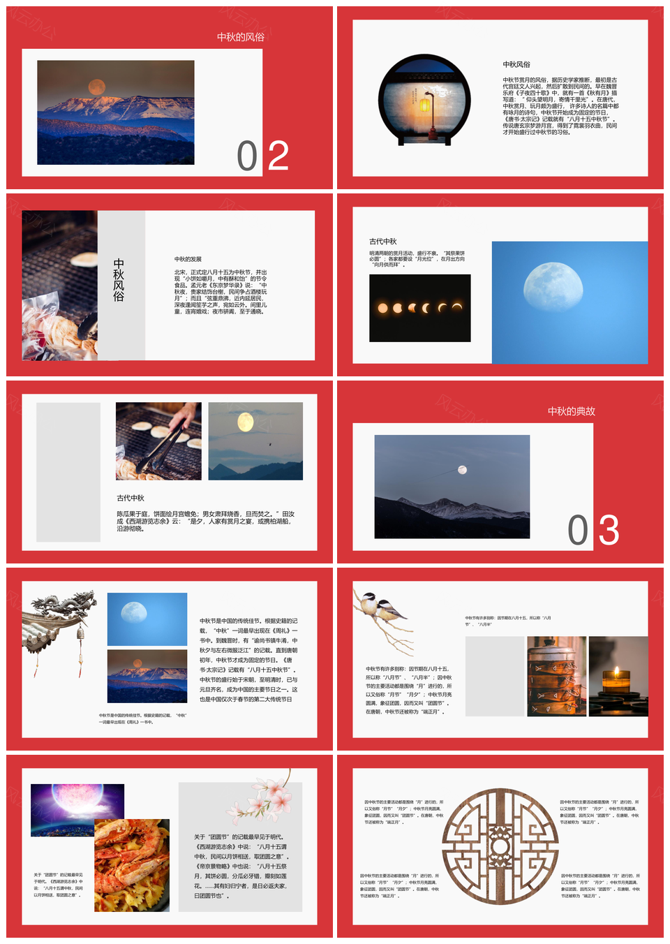 这是一张古风中秋茶话会喜庆团圆圆月灯笼民俗诗歌PPT模板,包含古风、中秋、茶话会、喜庆、团圆、圆月、灯笼、民俗、诗歌等主题内容,也可用作古风中秋茶话会喜庆、中秋茶话会喜庆团圆、茶话会喜庆团圆圆月、喜庆团圆圆月灯笼、团圆圆月灯笼民俗、圆月灯笼民俗诗歌、古风中秋茶话会、中秋茶话会喜庆、茶话会团圆圆月、喜庆团圆圆月、团圆圆月灯笼、圆月灯笼民俗、古风中秋、中秋茶话会、茶话会喜庆等PPT场景使用。 风云办公提供的古风中秋茶话会喜庆团圆圆月灯笼民俗诗歌PPT模板,下载格式为pptx,一共20页,作品中文字及图均可以修改和编辑,图片更改请在作品中右键图片并更换,文字修改请直接点击文字进行修改。
